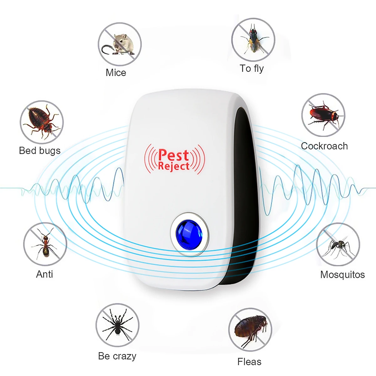 The pest repellent affects the insect's auditory system and stimulates the nervous system, causing the insect to feel uncomfortable and flee the room. It repels house mice, beetles, mosquitoes, ants and so on.