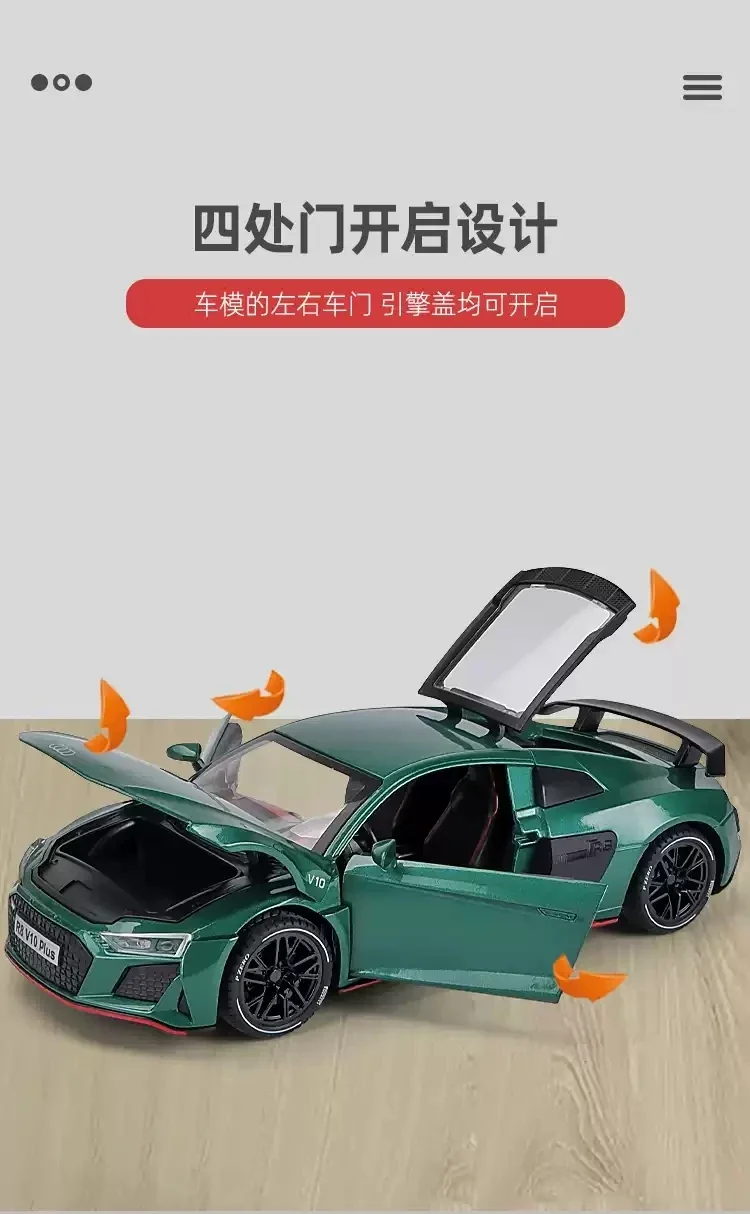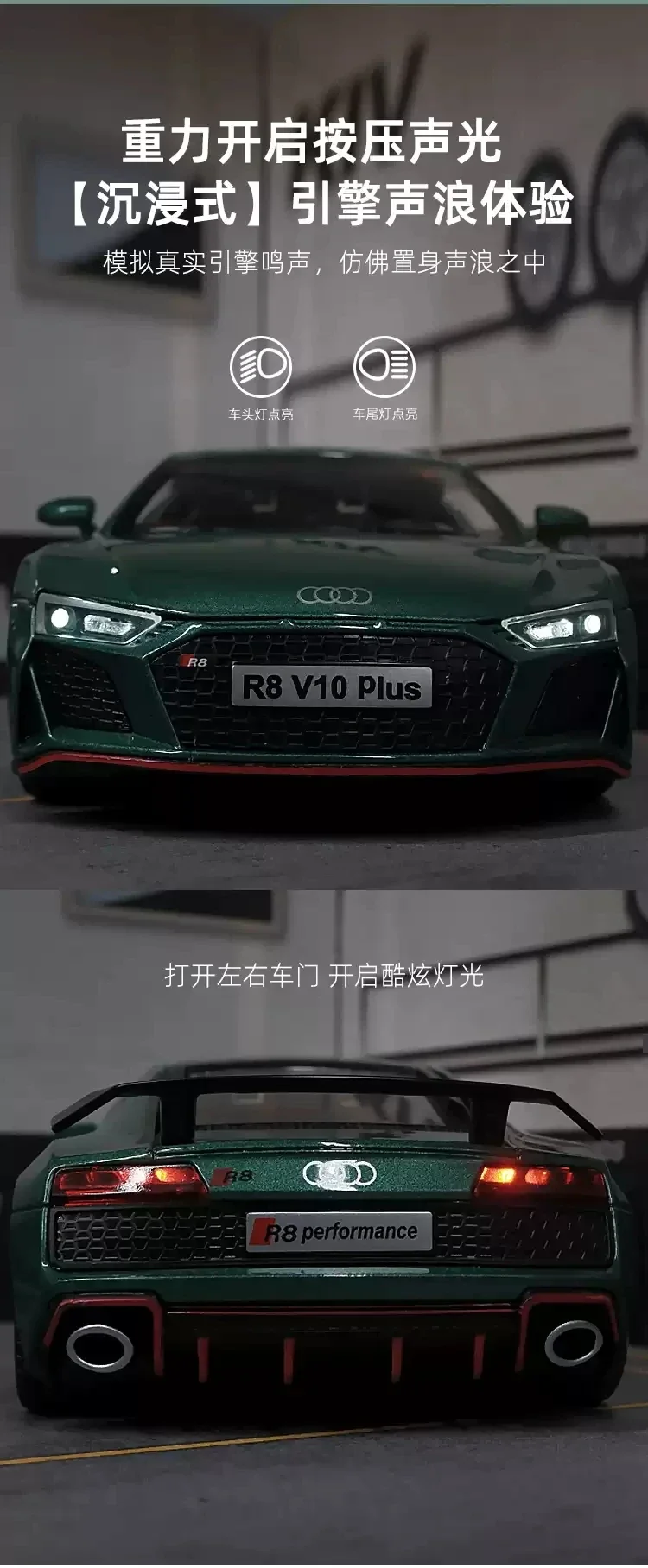 1:24 AUDI R8 V10 plus Car Model Alloy Sports Diecasts Metal Toy Car Model High S