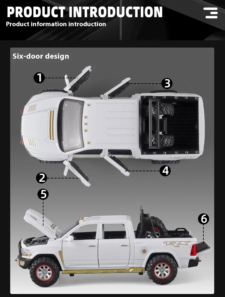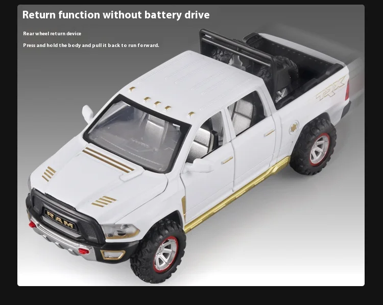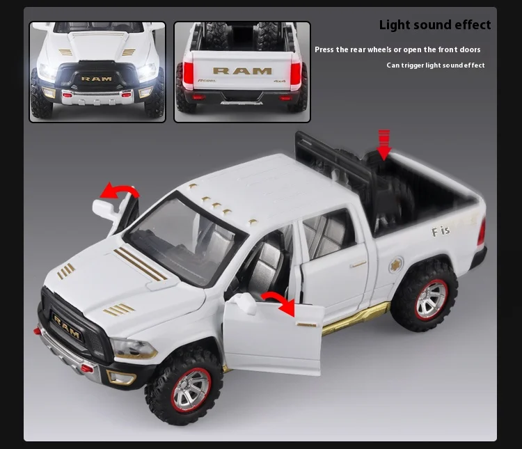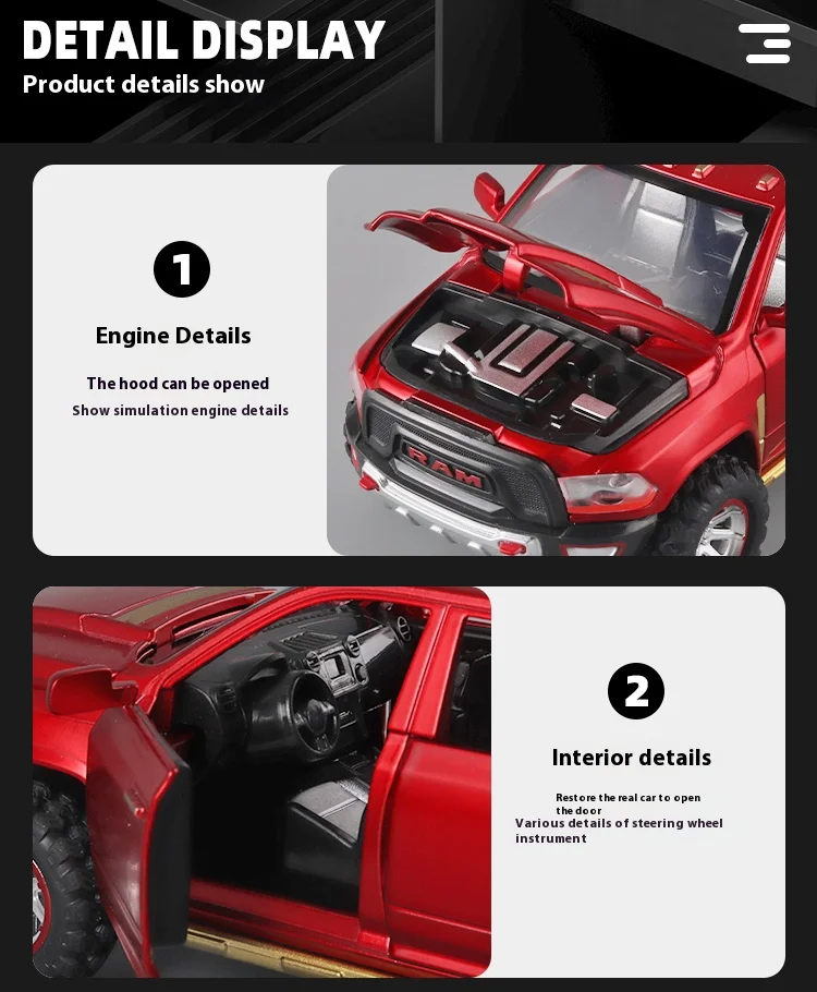 Interactive Sound & Light Effects: Equipped with exciting sound and light effects, this toy model brings the Dodge RAM to life. Kids can enjoy a more immersive play experience as they imagine driving off-road adventures.