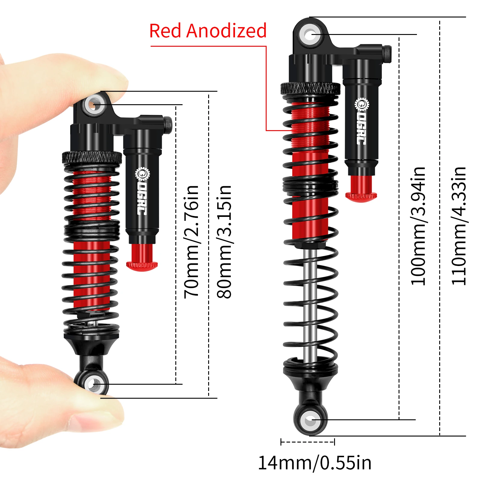 100Mm Aluminum Adjustable Piggyback Shock Absorber RC Damper for Axial SCX10 TRX