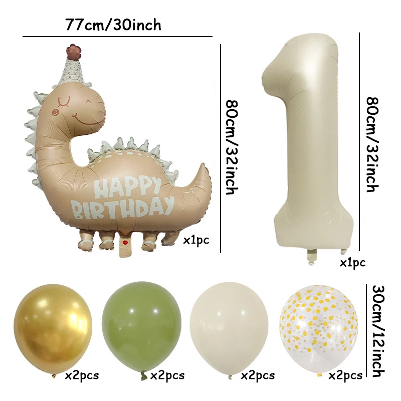 10Pcs Retro Matte Caramel Colored Dinosaur Aluminum Foil Number Balloon Set Happ