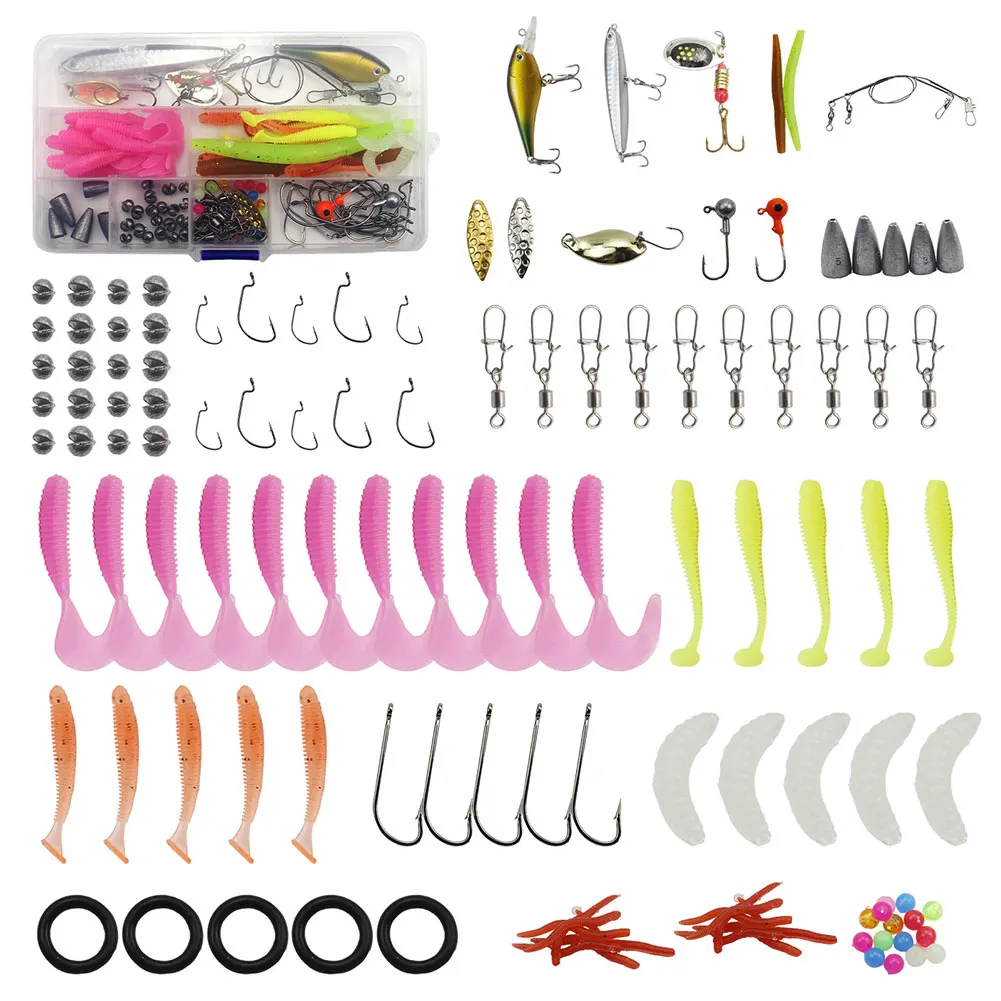 115Pcs Fishing Lures Kit Soft and Hard Bait Jig Hooks Sinker Weights Gift for Me