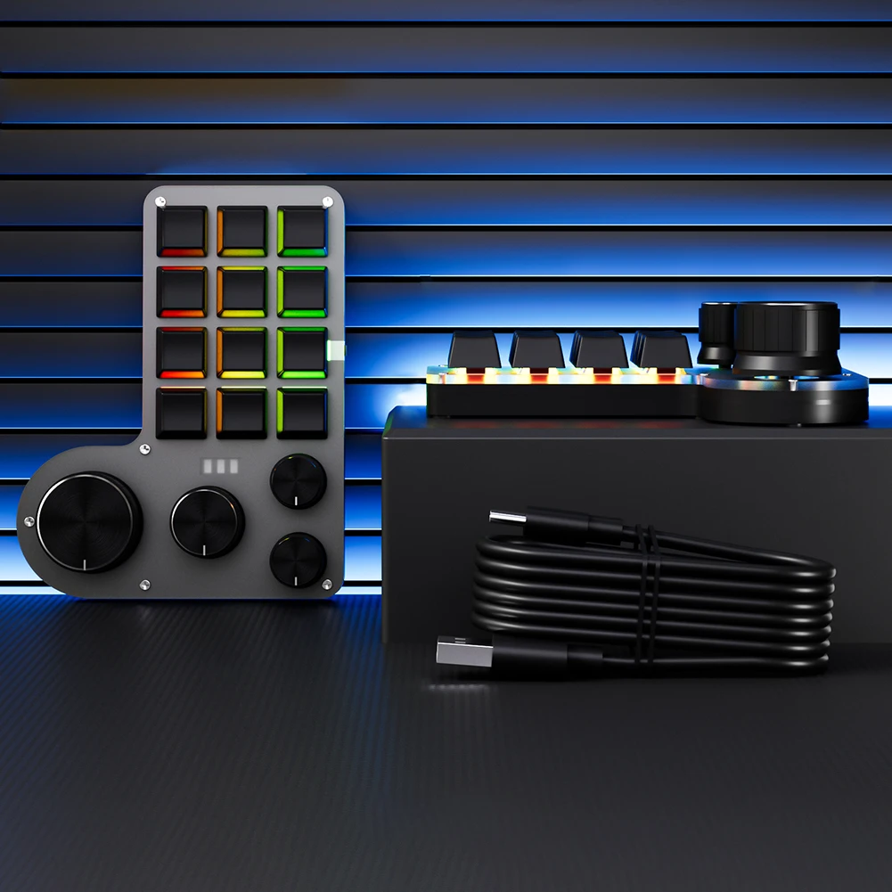 1. Versatile Control: Tailor your workflow with our programming macro keyboard, featuring four precision knobs that can be rotated 360 degrees for optimal control. Customize actions like zoom, track navigation, and volume to simplify your daily tasks.