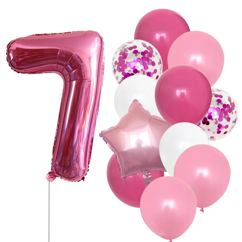12Pcs Girls First Birthday Party Balloons Pink Number Baloon Birthday Decoration