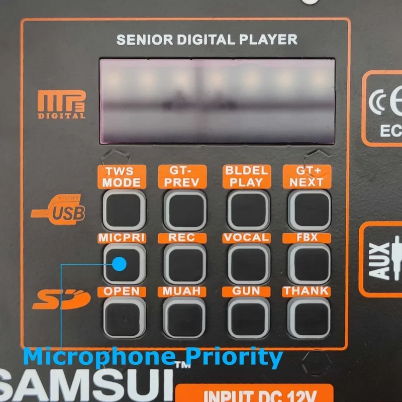 (2) Microphone Volume / Microphone Treble / Microphone Bass / Reverb / Delay / Echo / Microphone Priority.