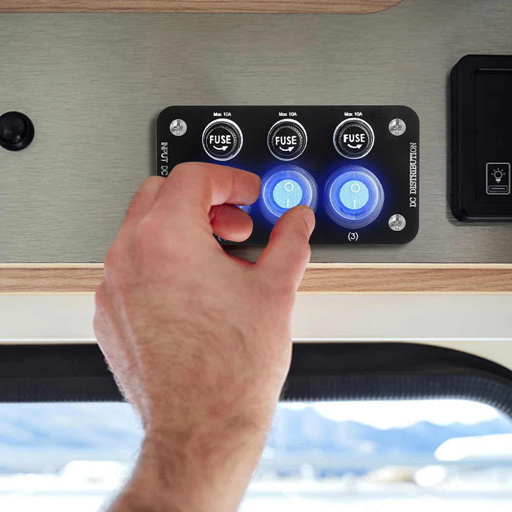 12V-24V LED Marine Boat Rocker Switch Panel 10A Fuse Blade Car Rocker Switch 3 Buttons for Boat Truck Trailer Camper Caravan RV
