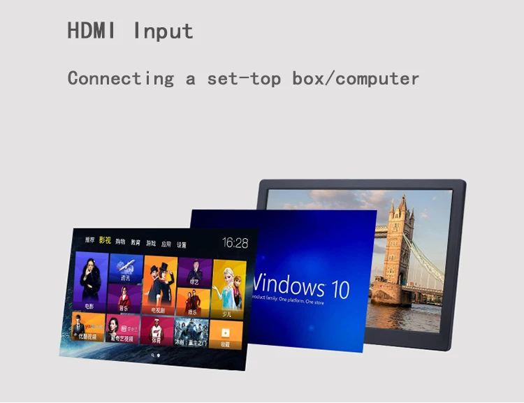 5. Support HDMI input or USB interface, which can be connected to external computer or USB flash disk