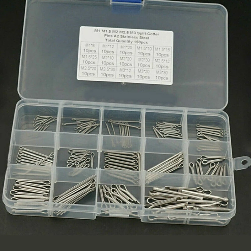 150/230/340PCS Stainless Steel Cotter Pin Kit,304 Stainless Steel Split Pin Asso