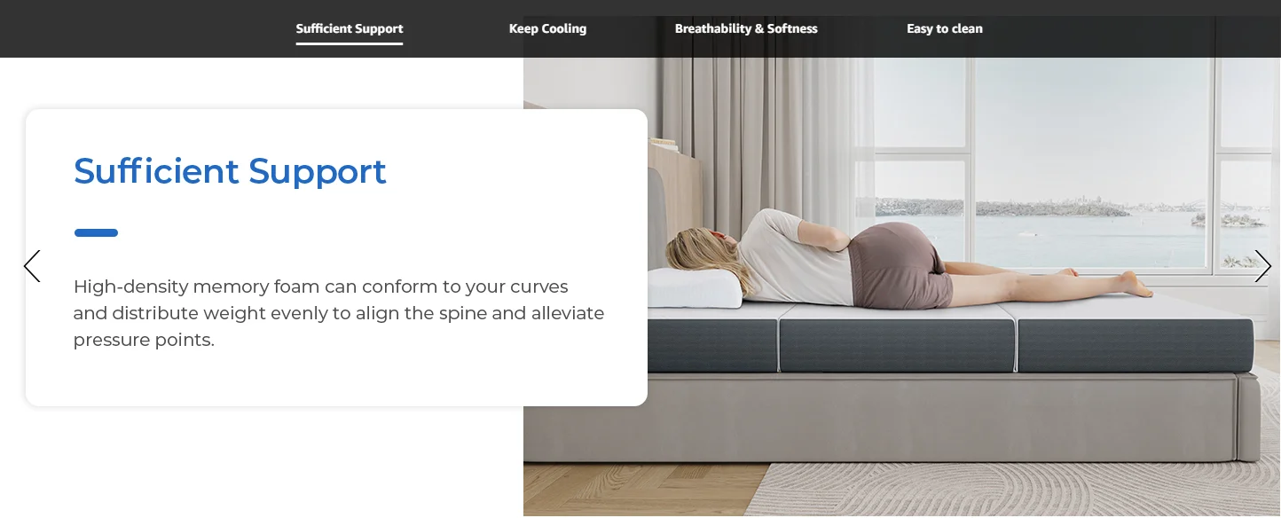 3. Superior Support & Comfort Made of premium CertiPUR-US Certified foam, this mattress features a 2-layer design that includes 3cm gel-infused memory foam and 12cm high-density base foam. The gel memory foam can effectively relieve your body pressure, and give you a cooling and cloud-like sleep experience; The high-density support foam gives your body perfect support from head to toe