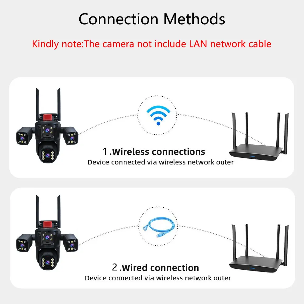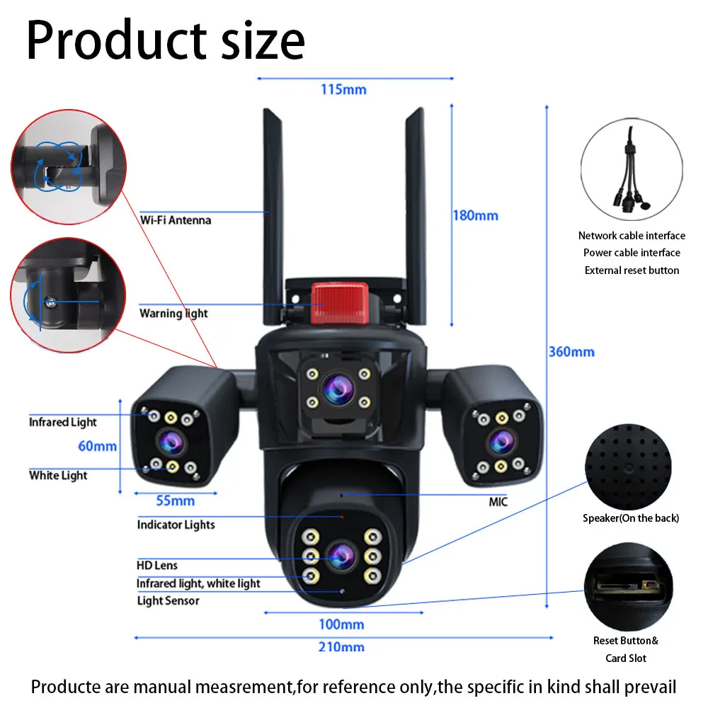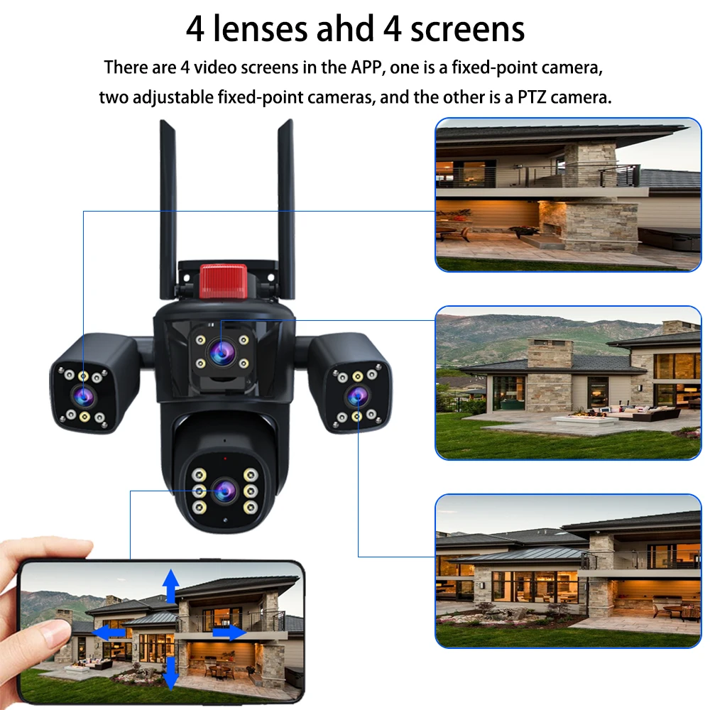 16MP Wifi Network Camera Outdoor Four-Lens 360 Panoramic HD Ai Tracking Securit