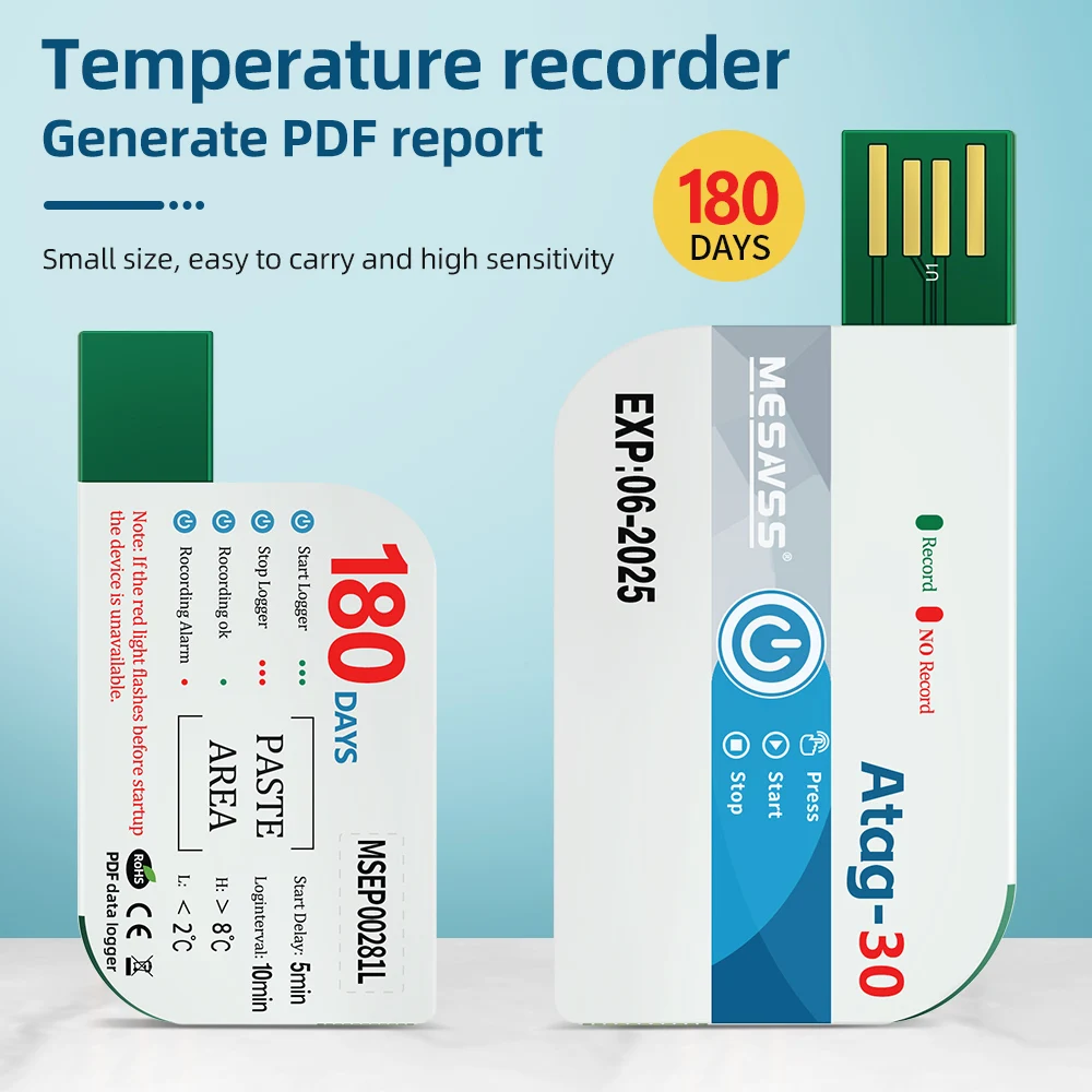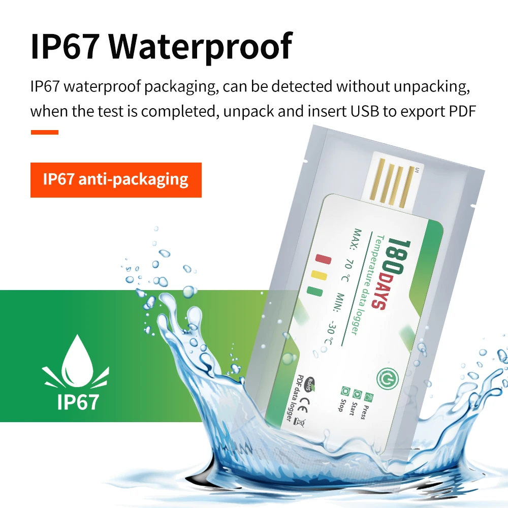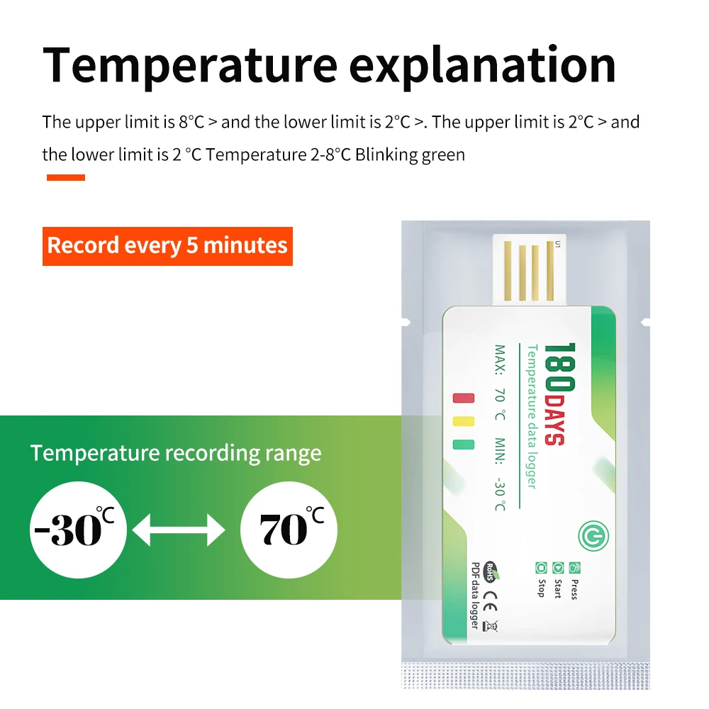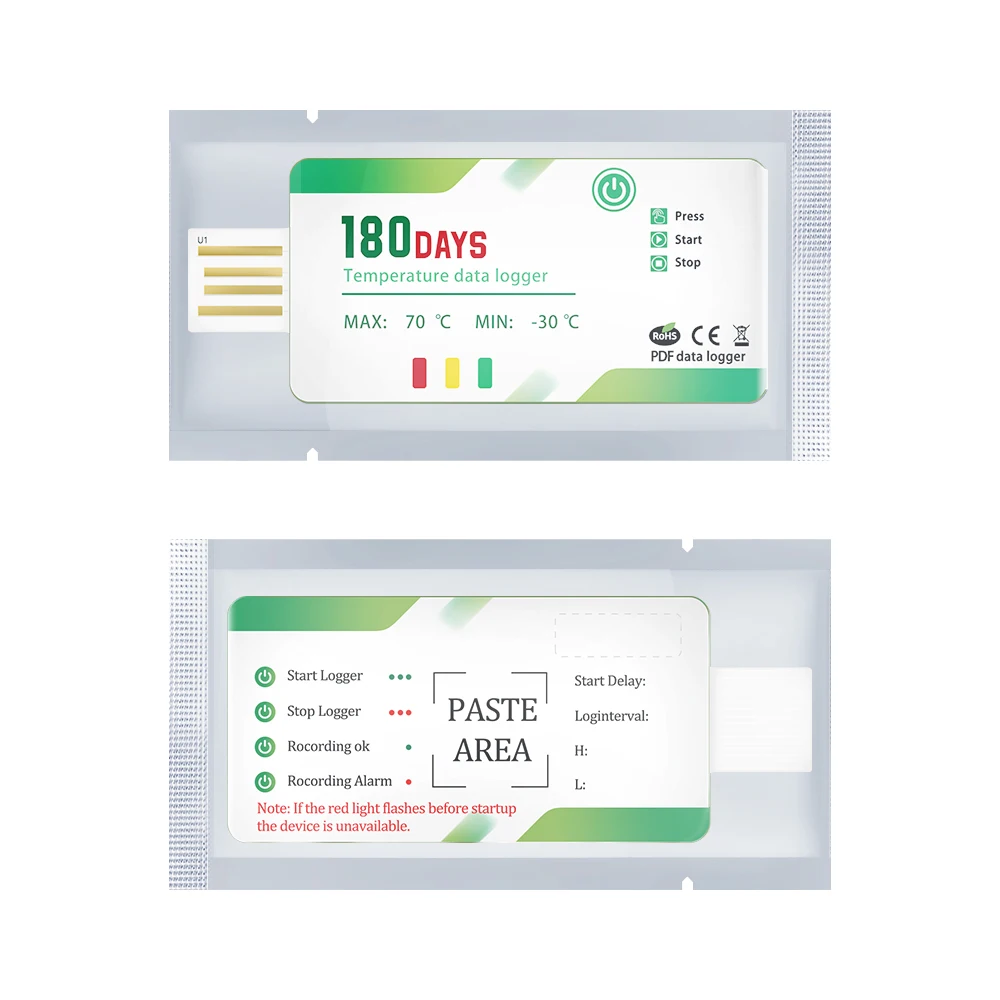 180 Days Temperature Recorder USB Temperature Data Logger with 60000 Points With App Warning Disposable For Cold Chain Transport