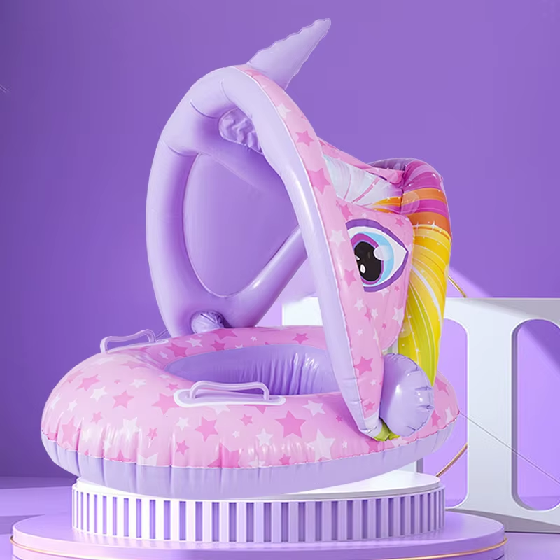 1Pack PVC Inflatable Swimming Ring with Belting Sun Shade Pool Float, Inflatable