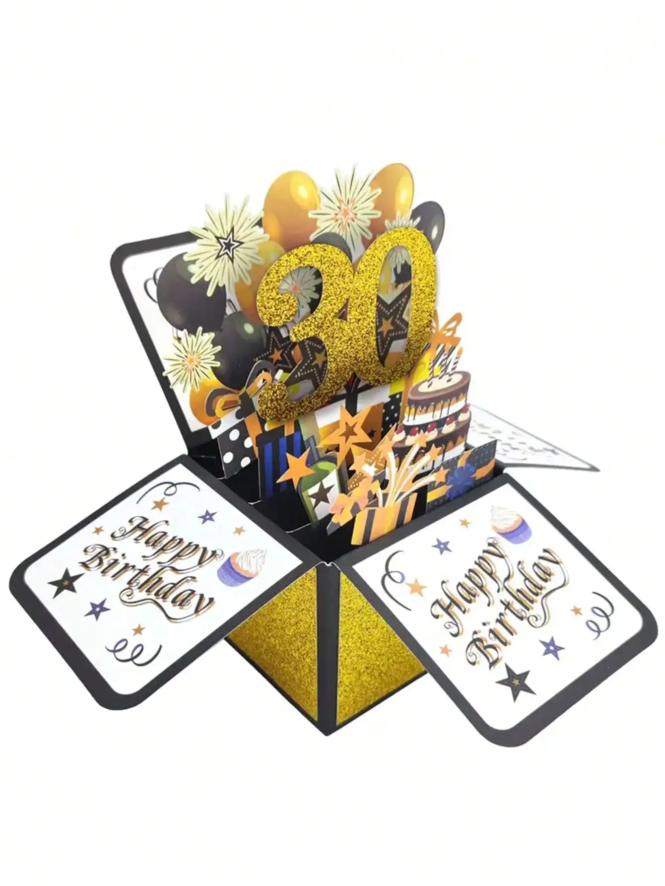 1PC, 18/30/40Th Happy Birthday Pop-Up Tape Note and Envelope 3D Pop-Up Birthday