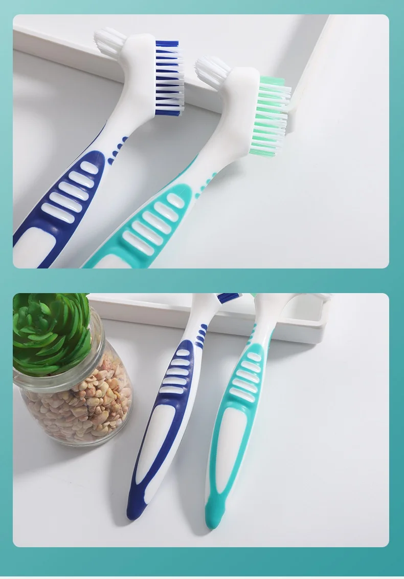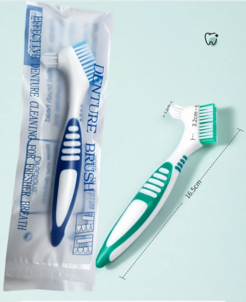 Double-Sided Denture Brush :This manual toothbrush features a double-sided design, allowing for comprehensive cleaning of your denture or orthodontic retainer.