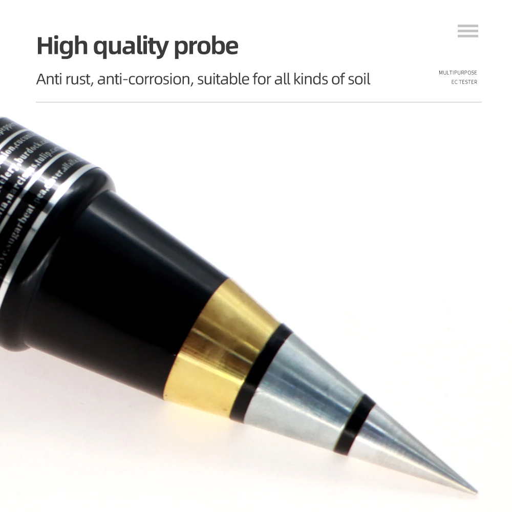 The first time you use the detector, the first electrode is inserted in the soil several times to remove surface oil so as not to affect the accuracy of PH value or humidity.