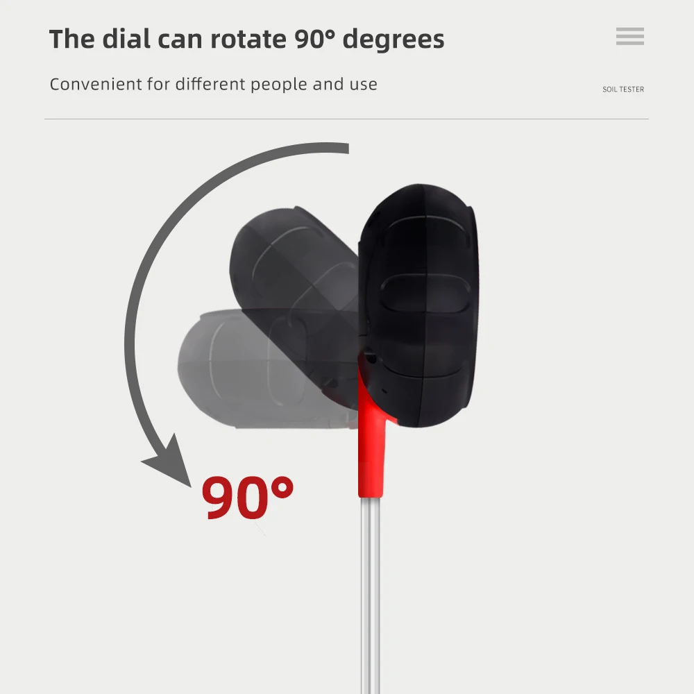 5. Insert the probe into the soil to be tested until the soil is no more than 2.5 cm from the fuselage. Wait up to 10 seconds, and the data can be read after the pointer is stable.