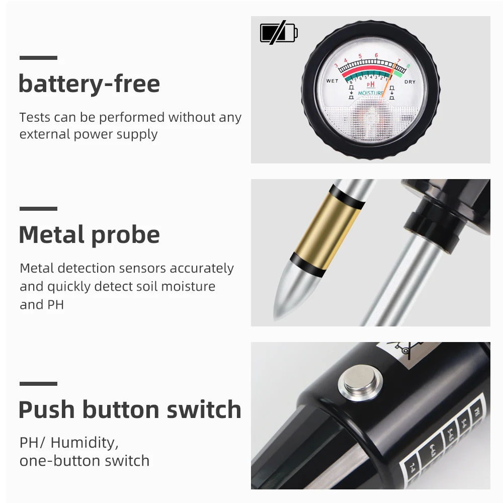 2 In 1 Soil Moisture Meter Portable PH Humidity Meter Garden Soil Analyzer Acidity Tester Planting Tool for Potted Crops