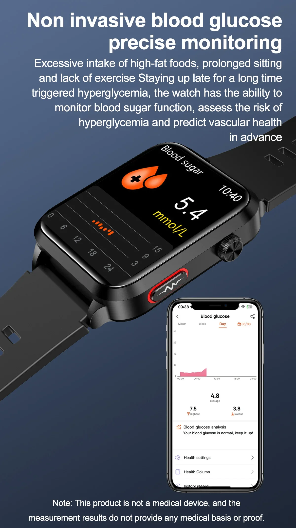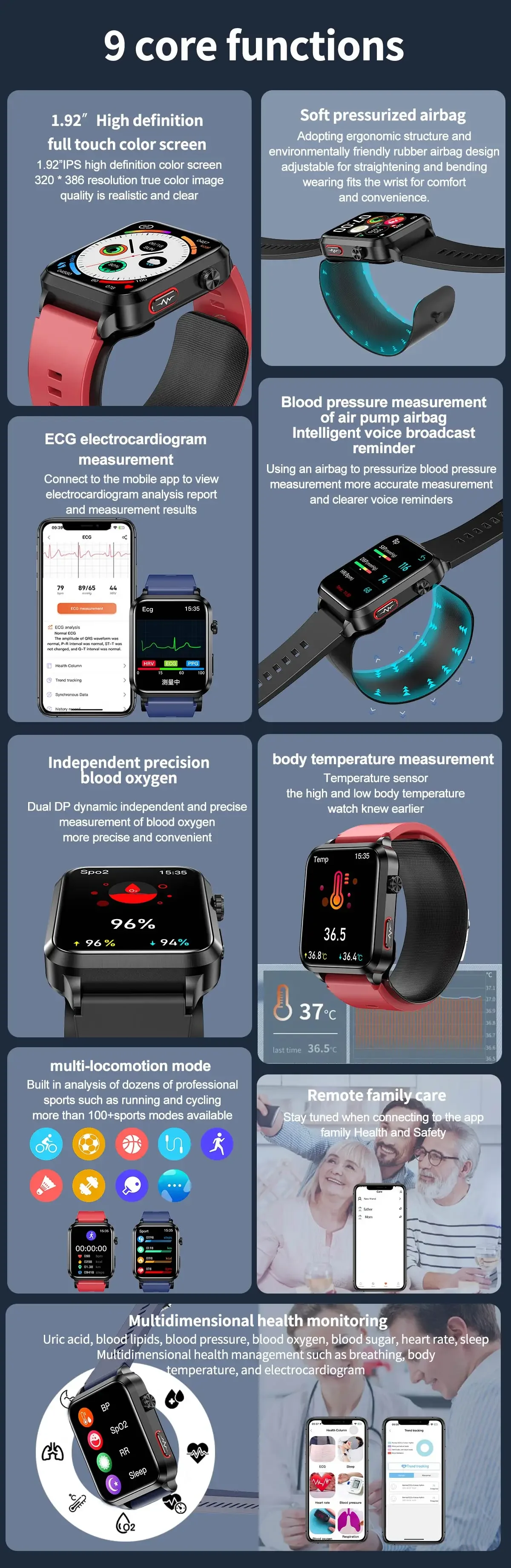 2024New Precision Blood Pressure Measurement Health Smart Watch Air Pump Airbag