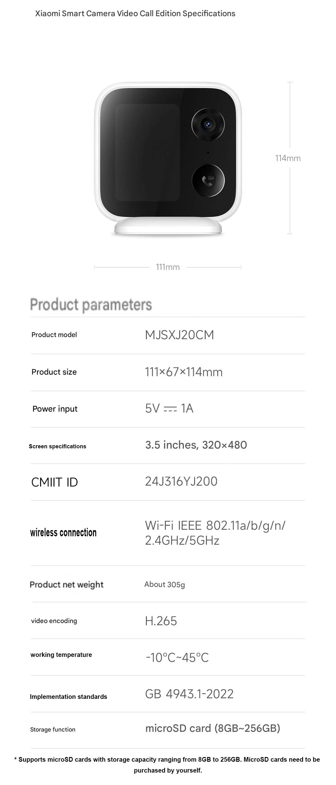 Storage function: microSD card (8GB~256GB)
