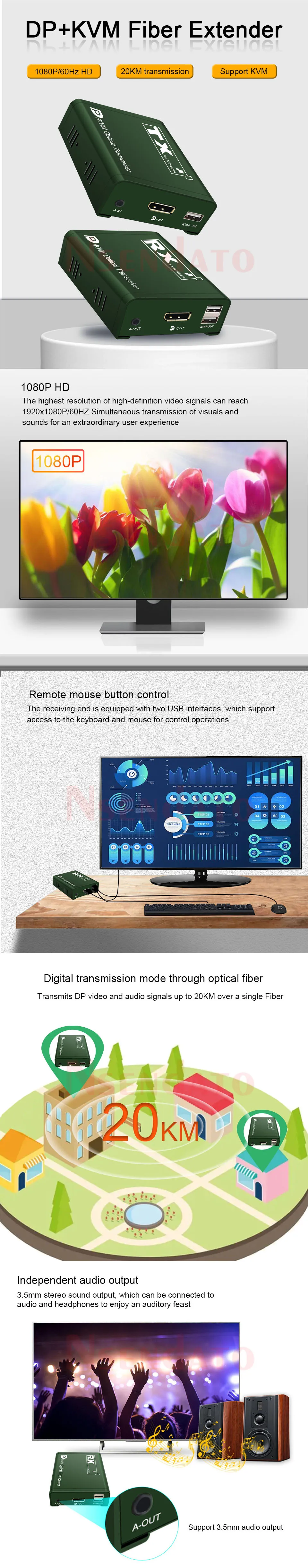 20km DP Fiber KVM Extender Transceiver Over LC Fiber Optical Cable 1080P USB KVM DP Video Transmitter And Receiver Extender Kit