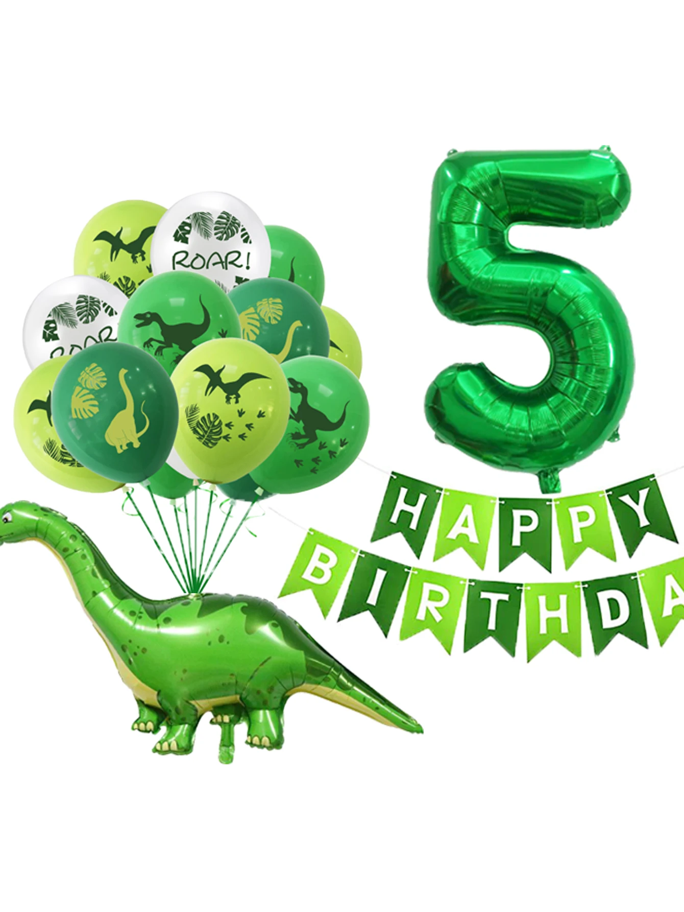 20Pcs Green Number Dinosaur Balloons Set Happy Birthday Banners Latex Balloons F