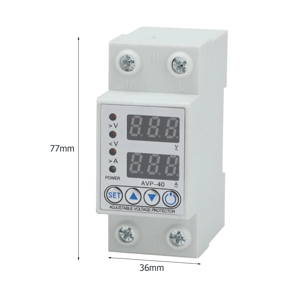 220V 40/63A Adjustable Over Under Voltage Protective Device Over Current Protection Limit Adjust Voltage Relay Din Rail Undervoltage Protector