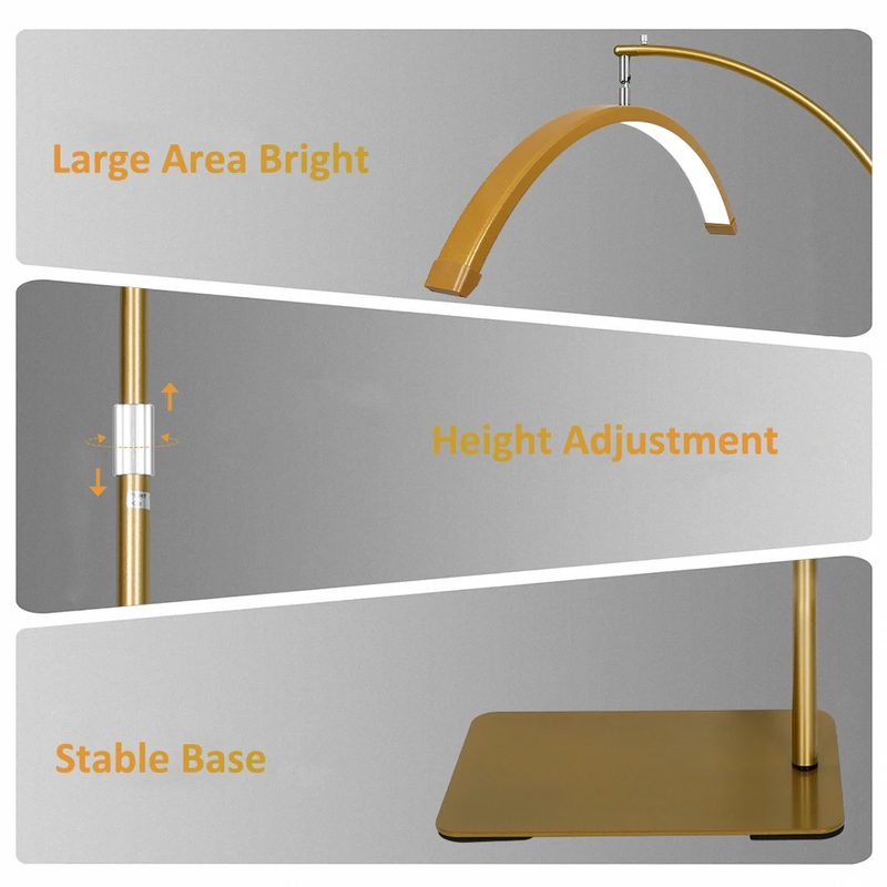 Flexible & Ergonomic Design: The 360rotating half-moon floor lamp offers optimal lighting and positioning for comfortable and precise application.