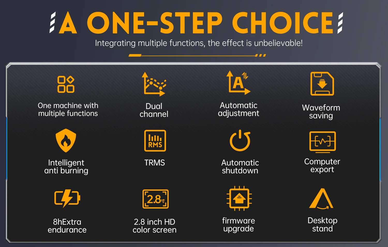 This device is equipped with three main functions of oscilloscope, multimeter, and signal generator.