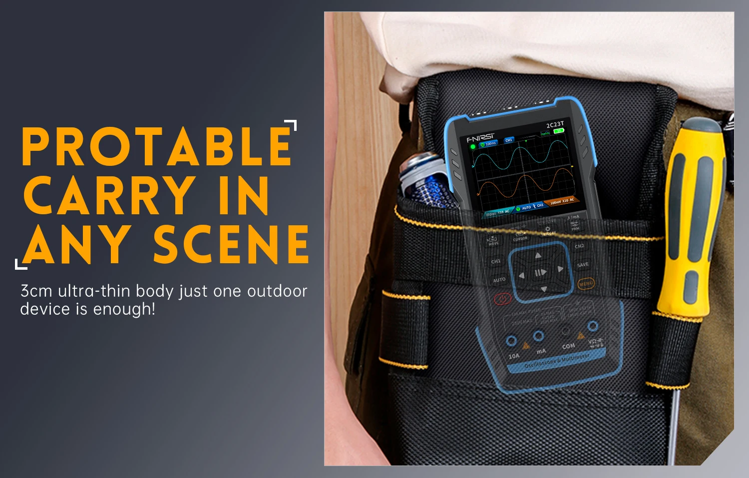FNIRSI-2C23T is a fully functional, highly practical, three in one dual channel digital oscilloscope designed for the maintenance industry and development industry launched by FNIRSI.