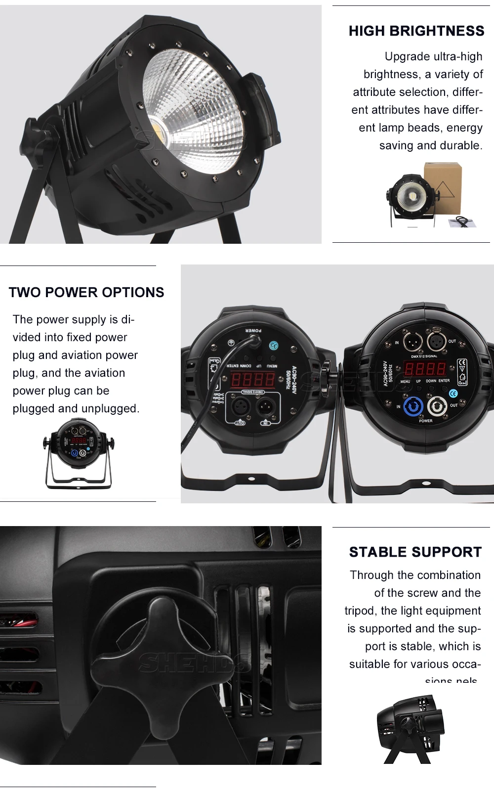 2PCS Led Par 200W COB Light with RGBWA UV 6In1 Ultraviolet Lamp Stage DJ Control