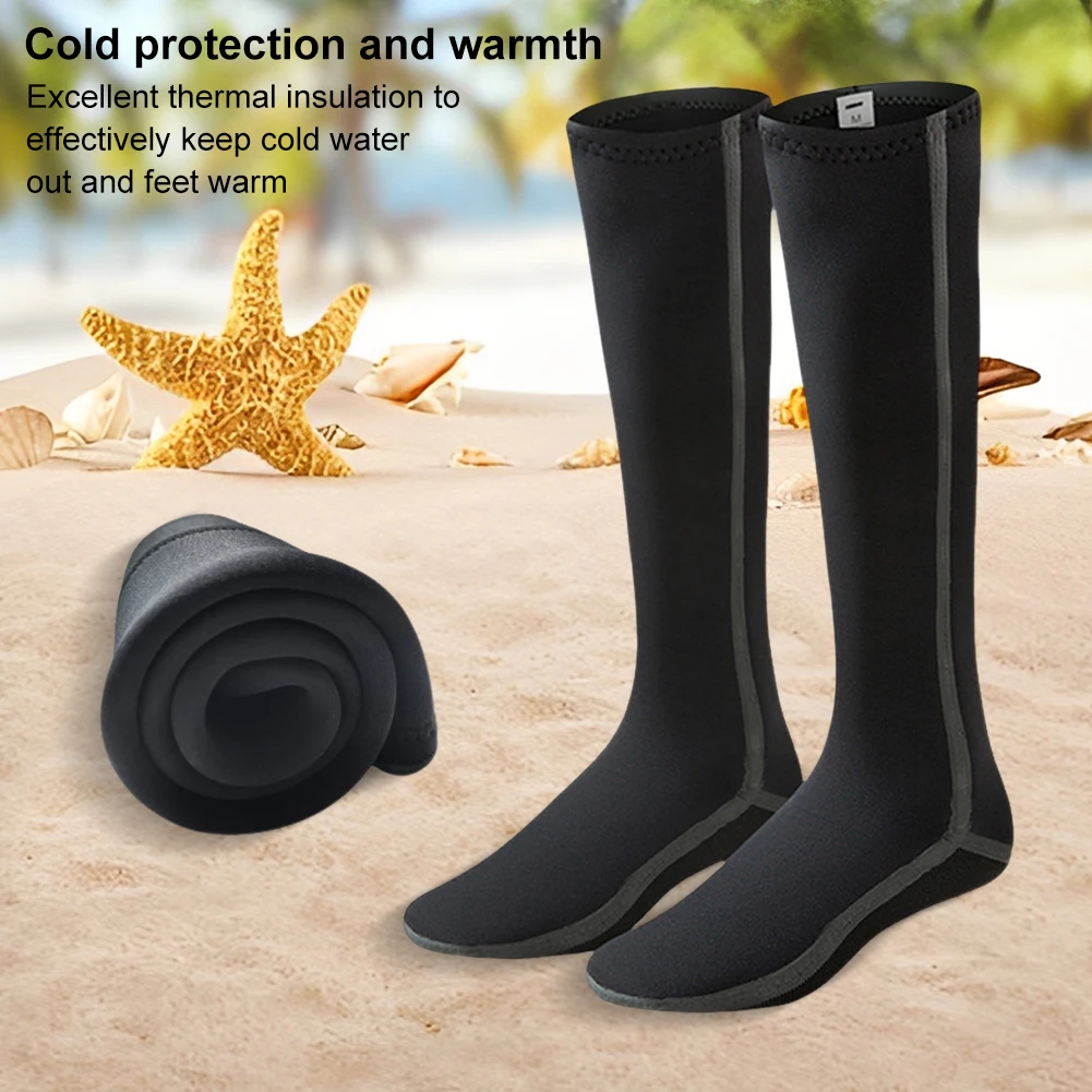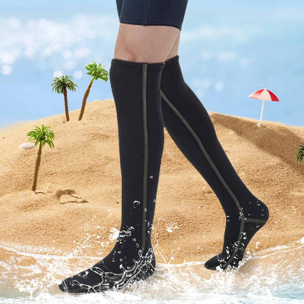 3mm Neoprene Thermal Wetsuit Socks Anti Slip Knee High Waterproof Socks Diving Water Fin Socks for Rafting Snorkeling Sailing Swimming