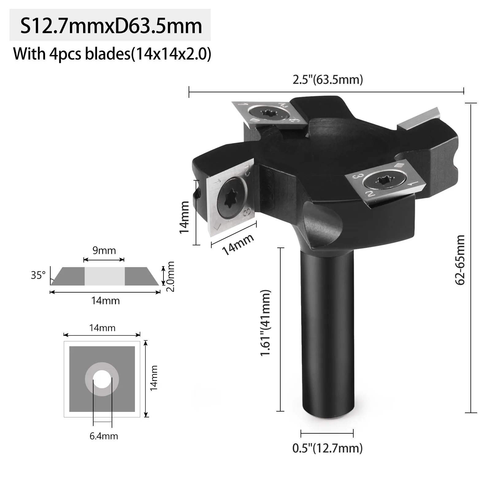 4 Flutes Carbide Wood Planer Bit 12Mm 12.7Mm Shank CNC Surfacing Router Bit Spoi