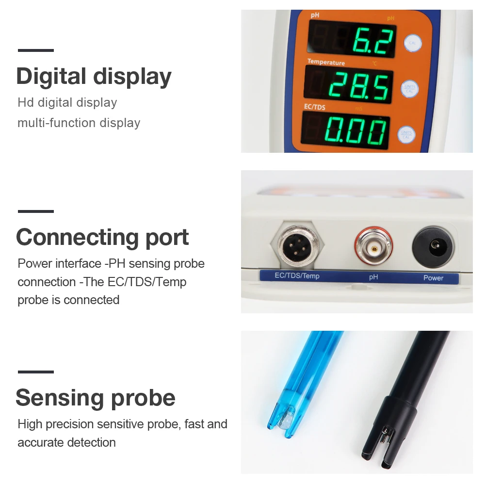 Prepare the 7.00pH, 4.00pH, 10.00pH standard solutions(not included).