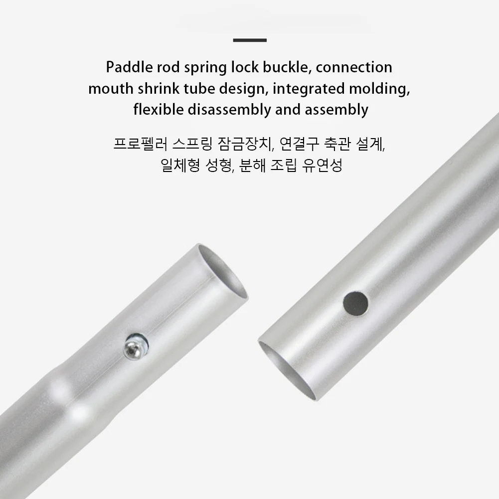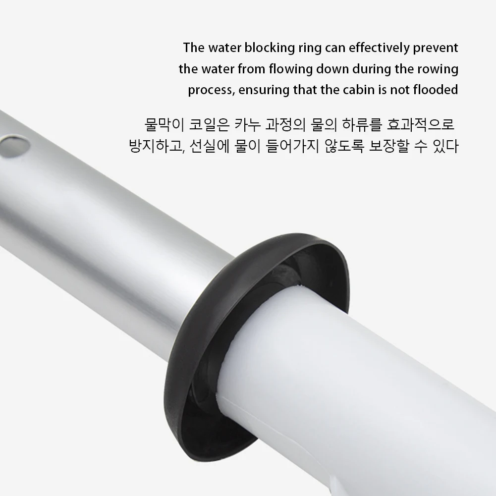 5.Spring-Loaded Lock: The floating kayak paddle's shaft is engineered with a spring lock mechanism and a tapered connection design for quick and secure assembly or disassembly, while the water guard rings effectively prevent water from running down the shaft into the kayak, keeping the cockpit dry.
