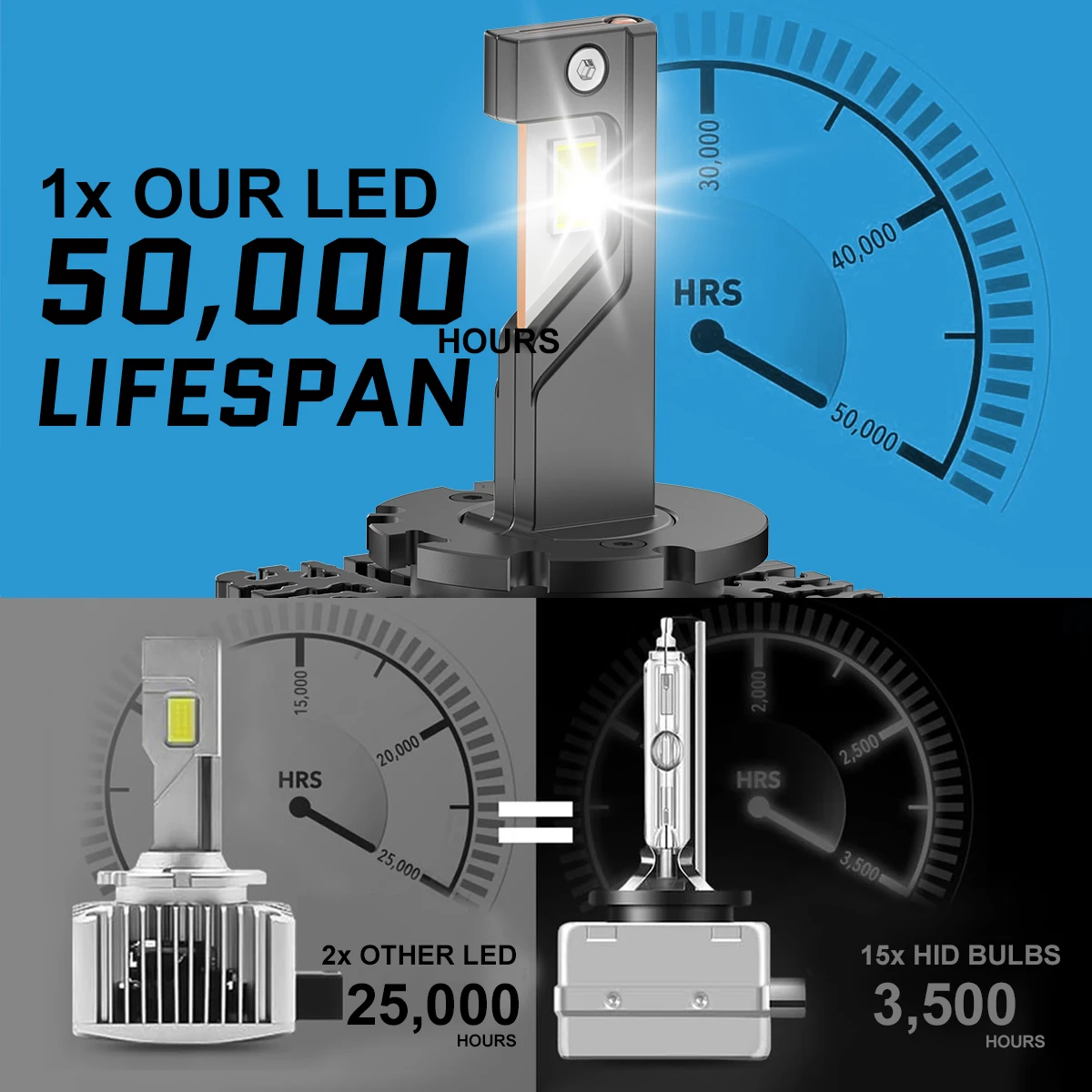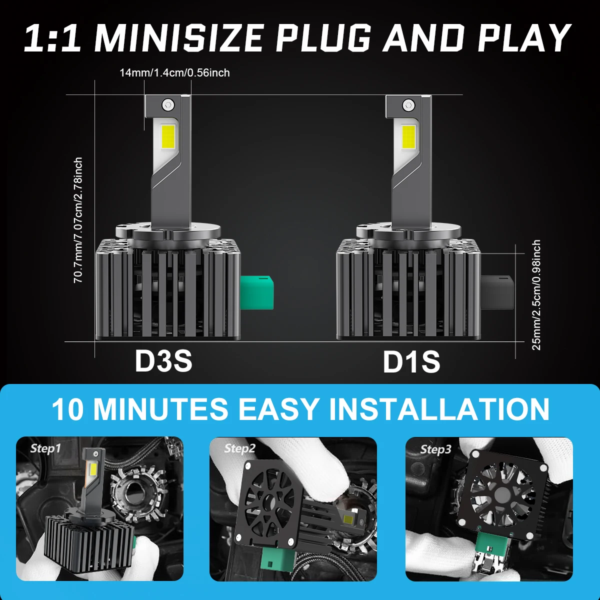 40000LM 2Pcs Turbo D3S LED Headlight Bulbs D1S LED Headlamps 6500K Super Bright