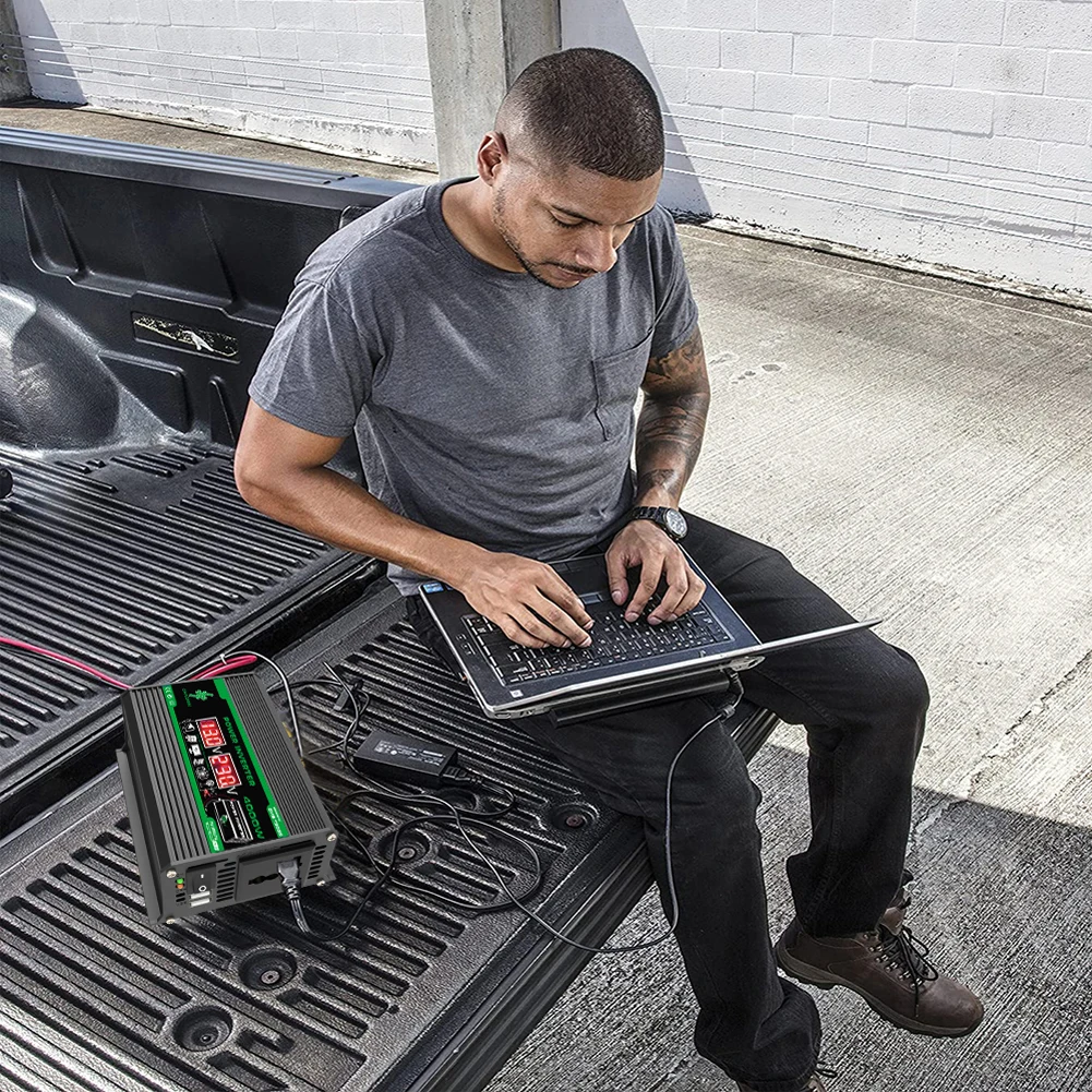 5. Wide Applications: Suitable for cars, ships, mobile postal and telecommunications, public security, emergency, and other fields, this vehicle smart inverter is a versatile and practical choice for anyone needing reliable and portable power on the go. The feature makes it perfect for anyone looking for a reliable, efficient, and intelligent car inverter that can enhance their driving experience. Whether you're camping, traveling, or just need a power source on the road, this digital power inverter provides a convenient and safe solution that can meet all your power needs.
