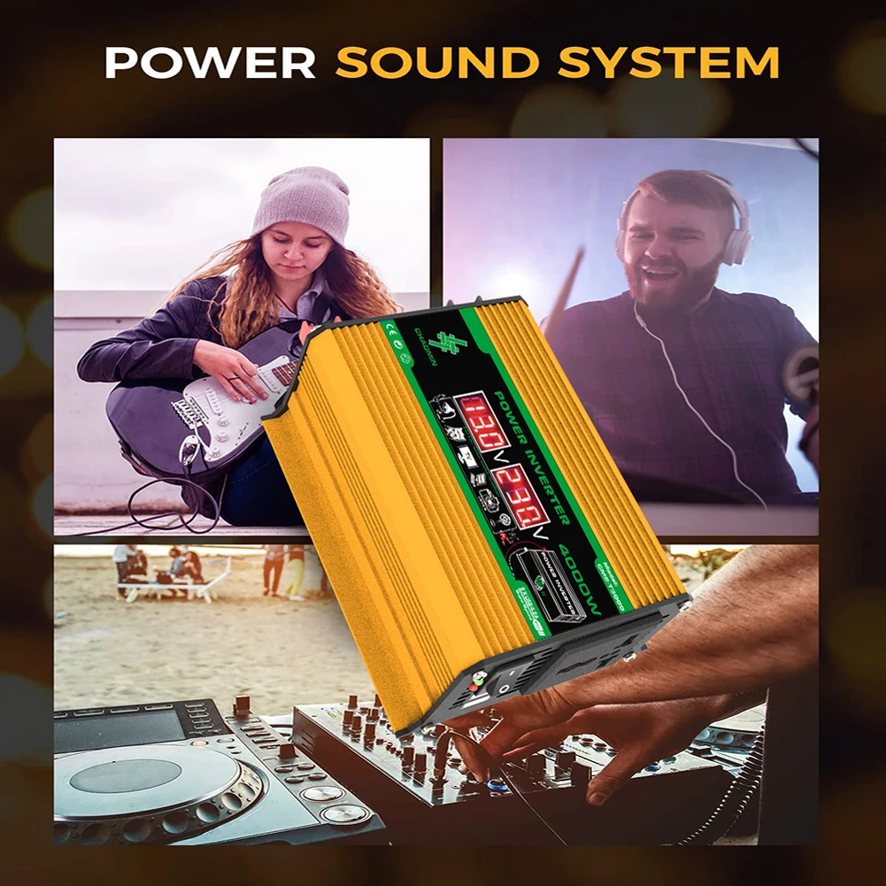 12V To 220V/110V Car Inverter 4000W Vehicle Smart Inverter LCD Display Digital Power Inverter LED Voltage Display for RV Caravan