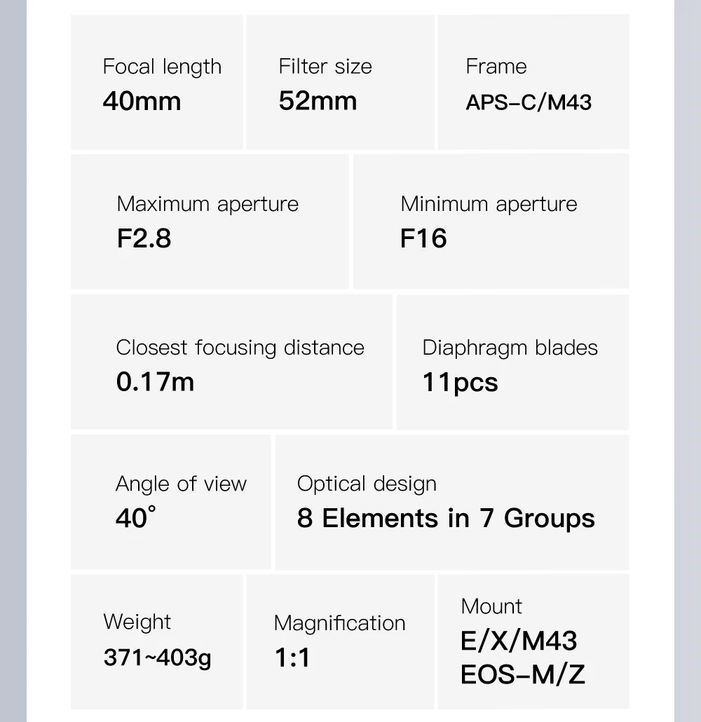 40Mm F2.8 Macro Cameras Lens APS-C Manual Focus Lens for Nikon Z Fujifilm XF Son
