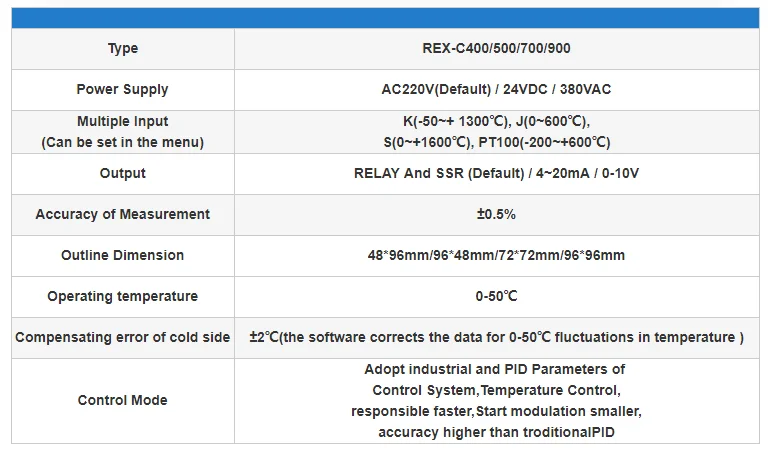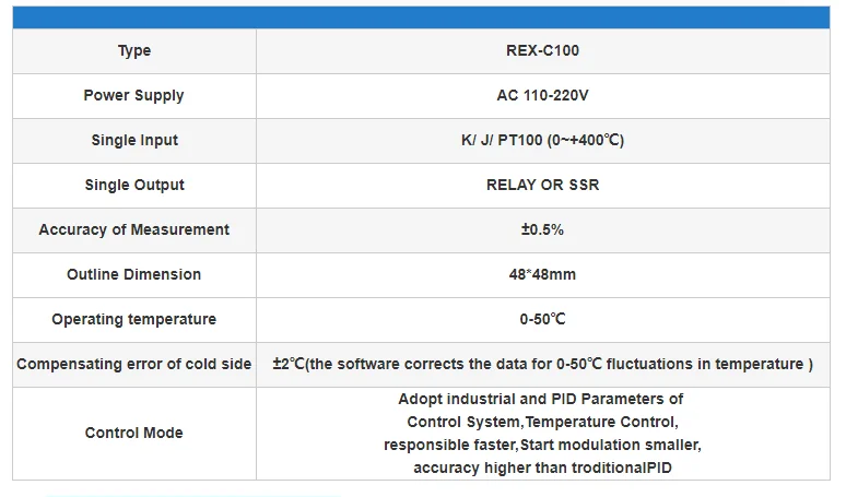 48*48 REX-C100 K J PT100 Thermostat 400 Degree 220V Digital Output Electronic PI