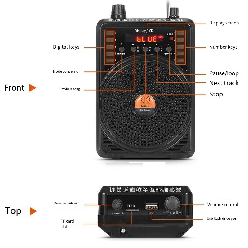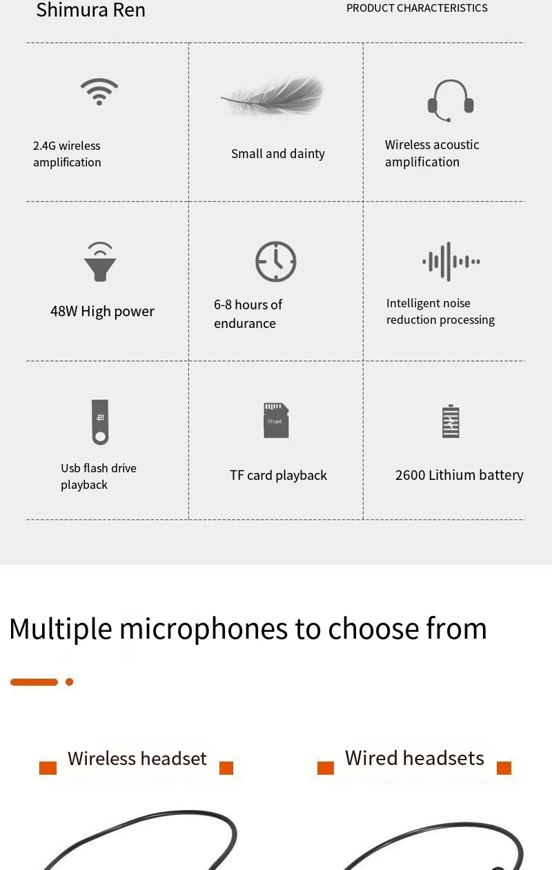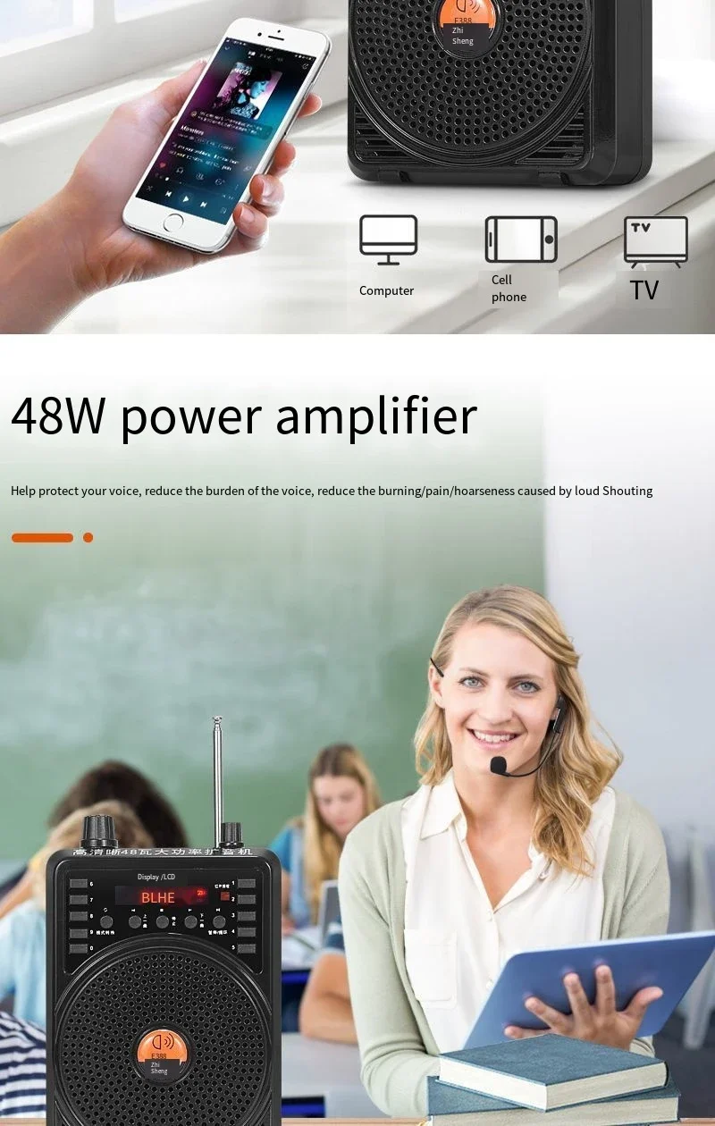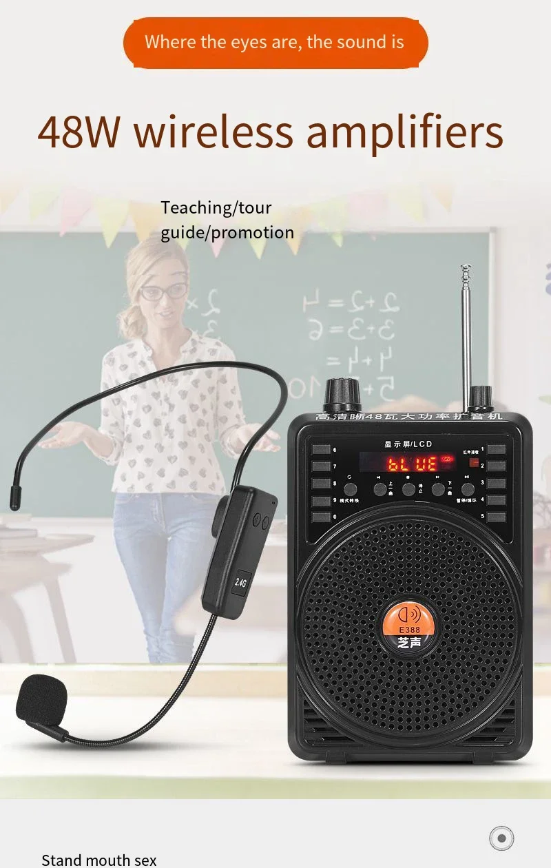 48W Wired/2.4G Wireless Microphone Bluetooth Speaker Teacher'S Classroom Amplifi