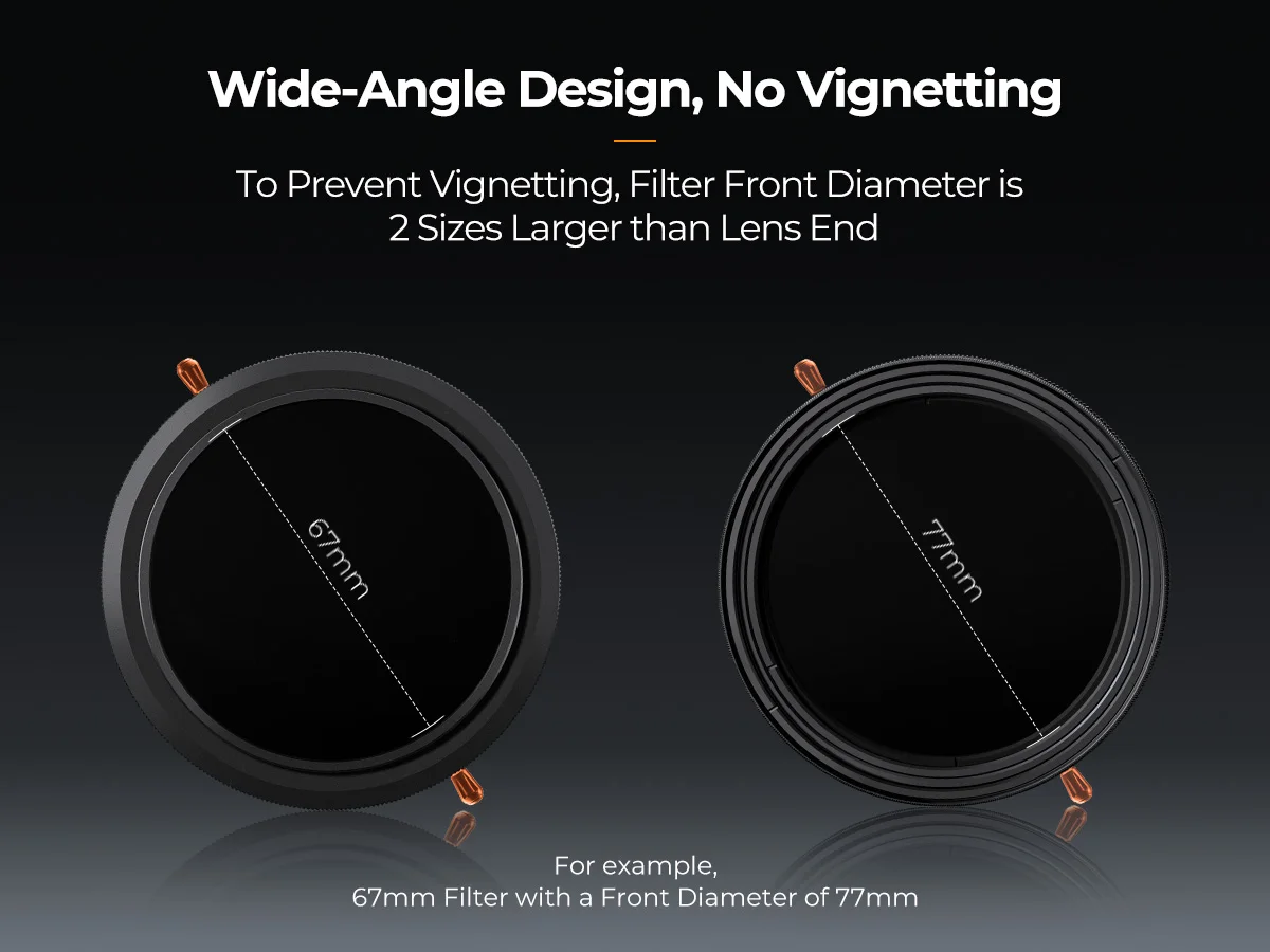 Say goodbye to the "X" cross on images, K&F utilize cutting edge technology you're going to say goodbye to this common issue with wide angle lenses and variable ND filters.