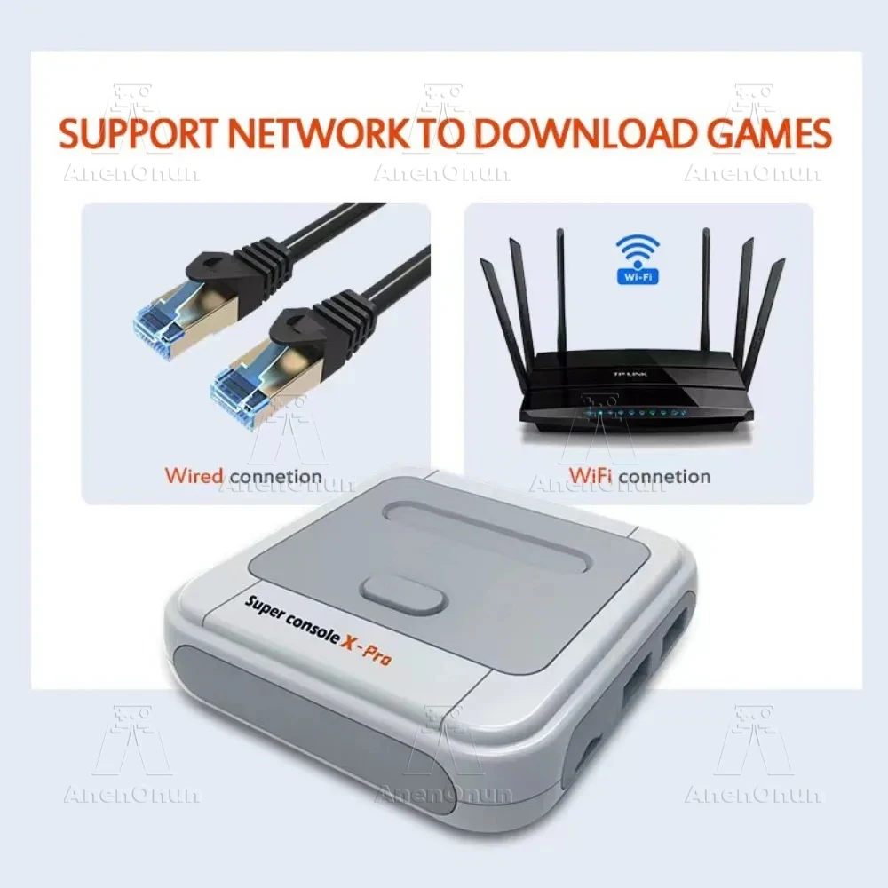 1080P HD/AV Output - Supporting 26 Languages and HD/AV(1080P/720P) output,Super Console X Pro is Easy to Set Up,Simply Plug and Play,and You can Enjoy Retro Gaming Fun on Your 4K TV.With WIFI/LAN Connection,You can also Watch TV Online.