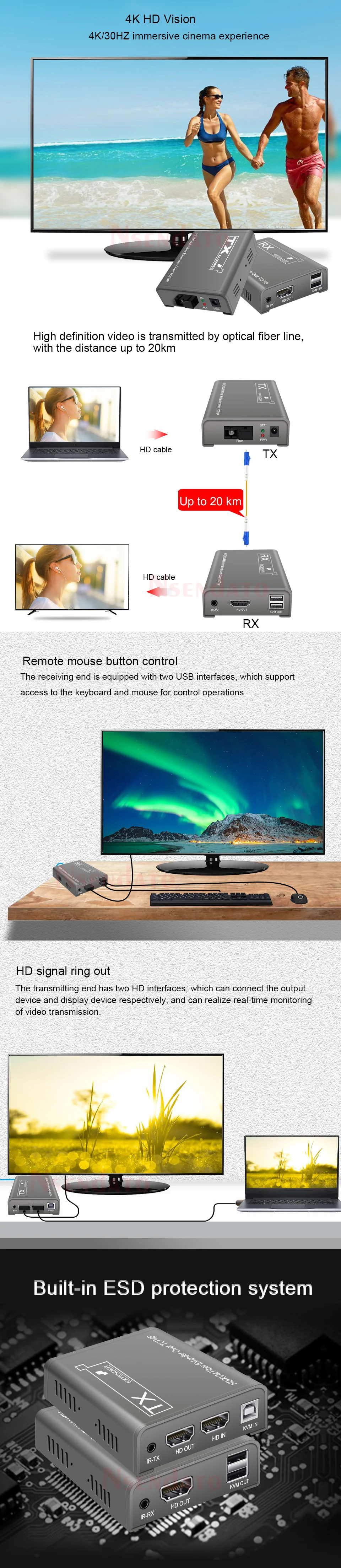 4K HDMI USB KVM Optical Extender 20KM TCP/IP KVM Extender HDMI over SC FC Fiber