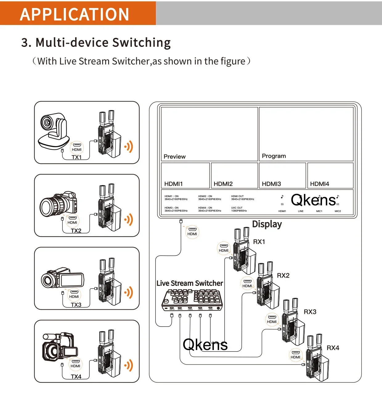 2.The RX cannot work alone,pls buy 1 TX and 1 RX at least, MAX.4 RXs can be paired to 1 TX