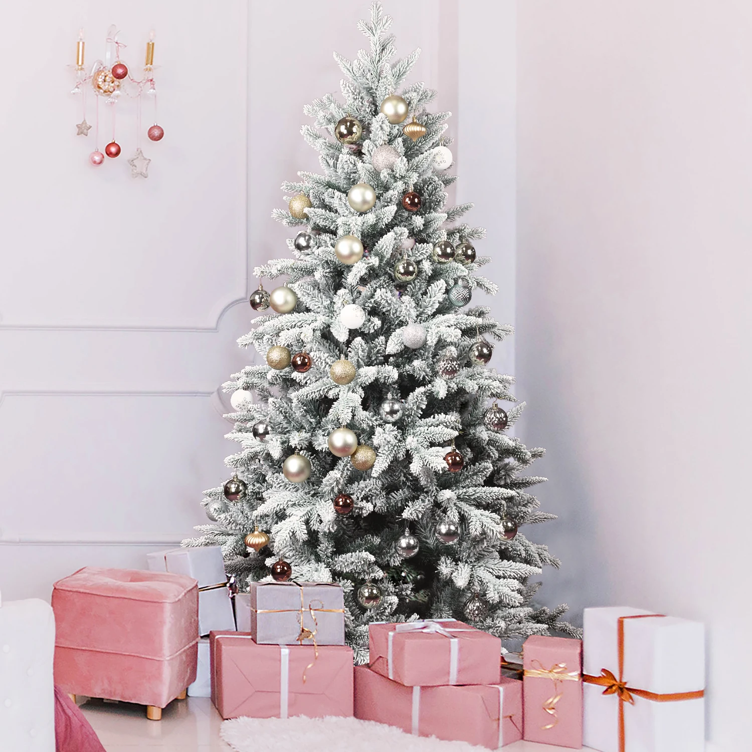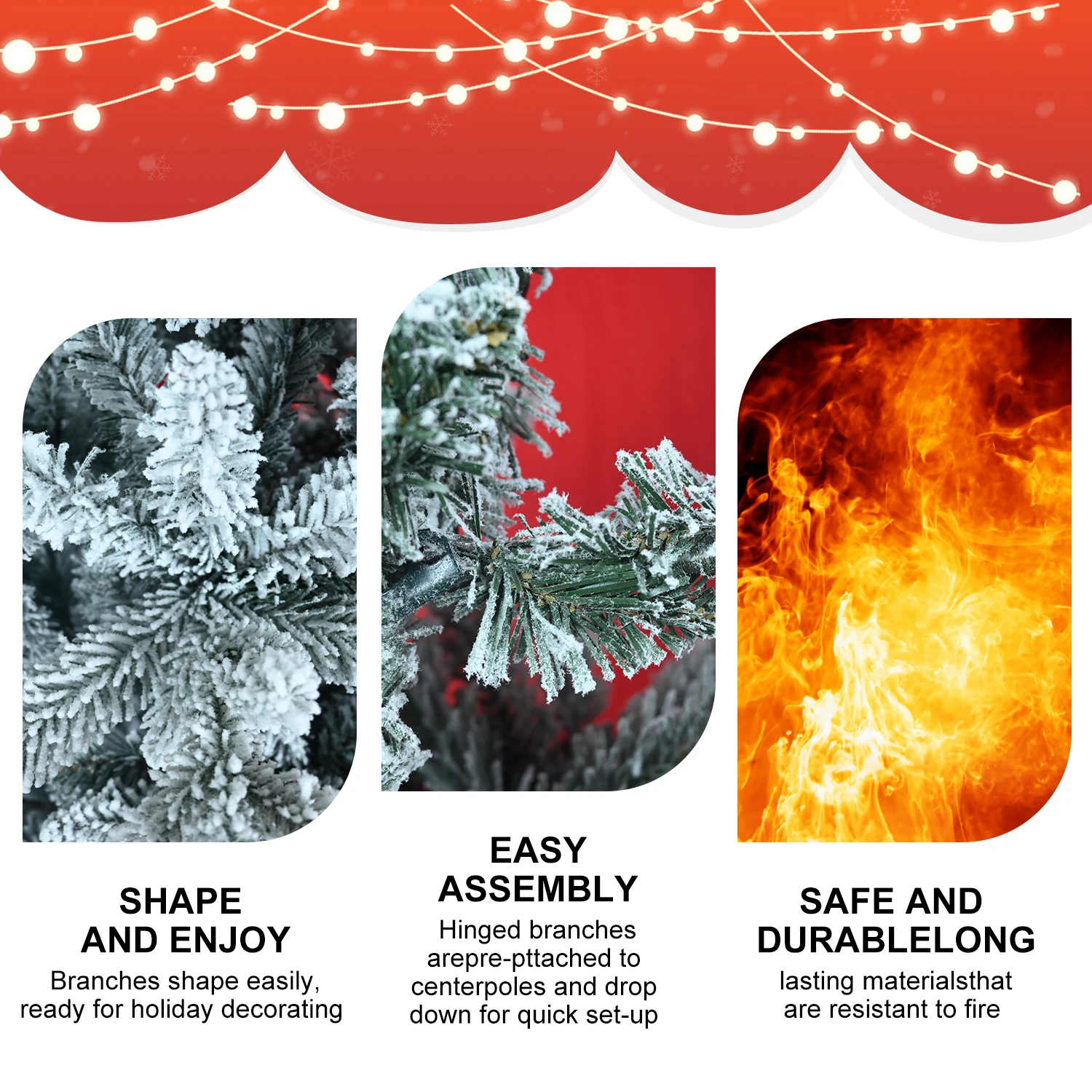 5/7FT Artificial Christmas Tree Holiday Decoration Flocked Xmas Tree with Sturday Metal Stand Auto-Spread/Close up