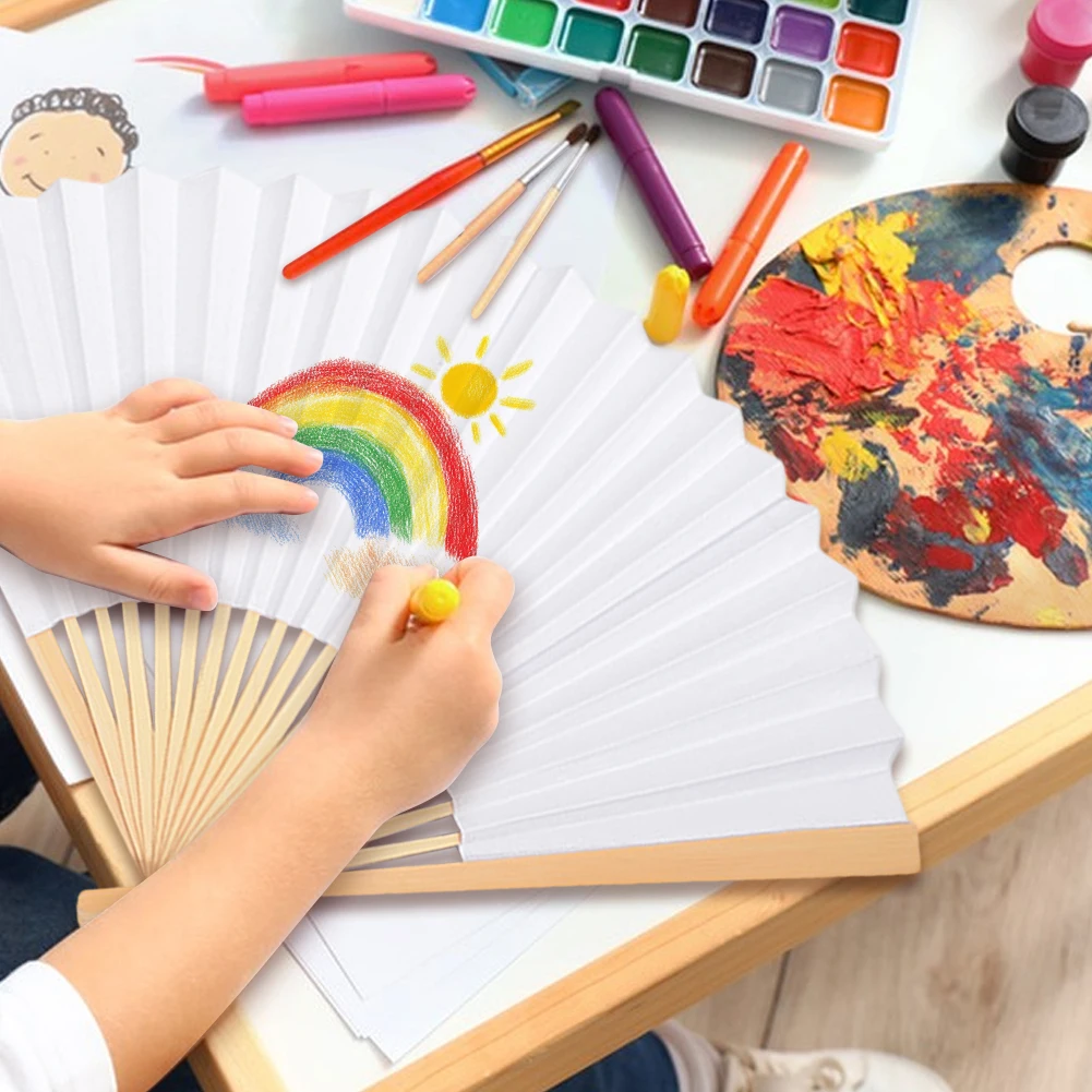 6/10/20 Pcs White Paper Hand Fan Bamboo Folding Fan DIY Blank Paper Fan for DIY