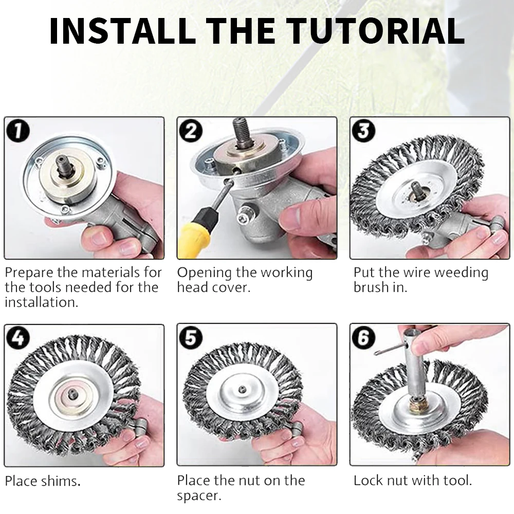It can be used to mow lawns, remove weeds from corners or between bricks, and clean moss from sidewalks and weeds from gravel. Can be used to remove rust, clean the floor, brush weeds, remove stubborn dirt and so on.
