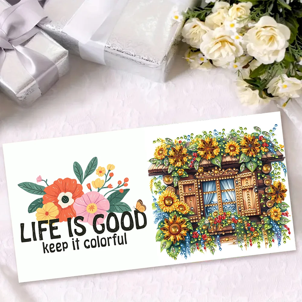 Features: 1. Vibrant Colors: The bright and vivid colors of the diamond painting greeting cards make them appear more realistic and lively. This added vibrancy enhances the overall aesthetic appeal, making your greetings stand out beautifully.