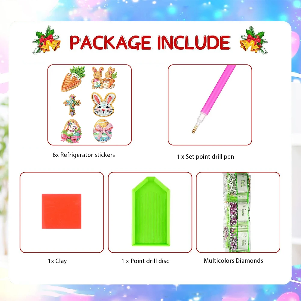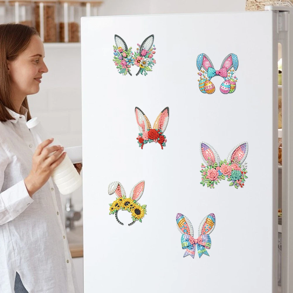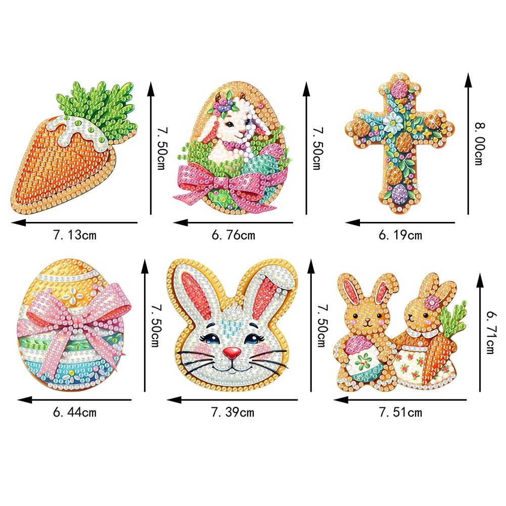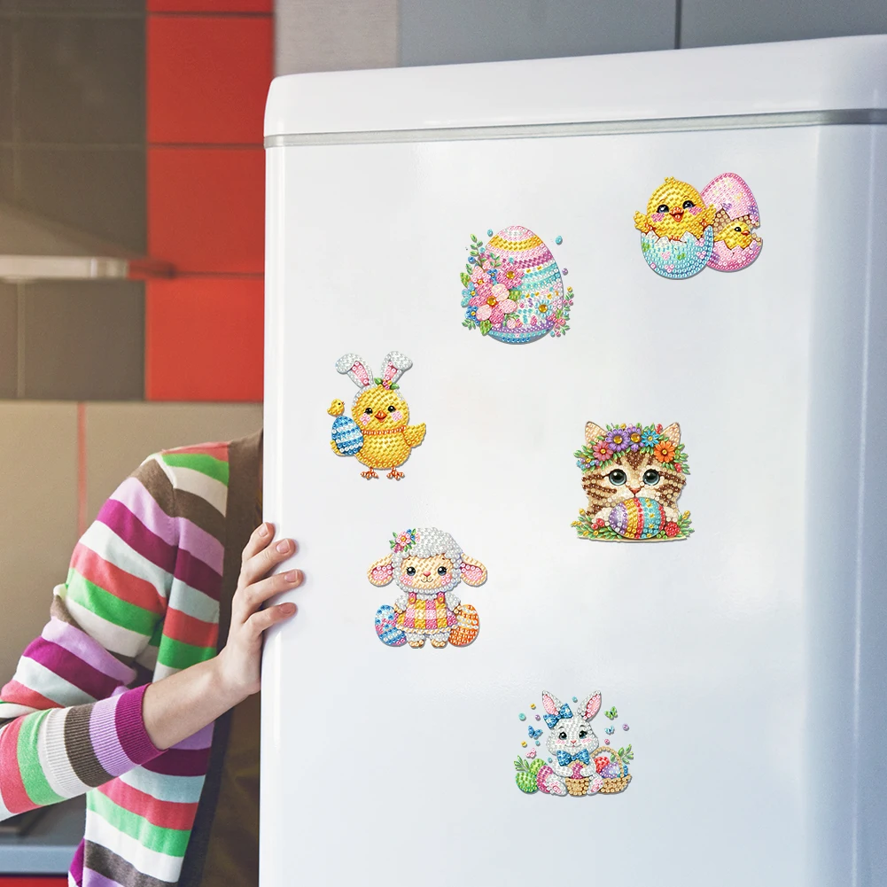6Pcs Easter Diamond Art Fridge Magnet Diamond Art Magnets Decals Diamond Painting Fridge Magnet for DIY Crafts Party Gift