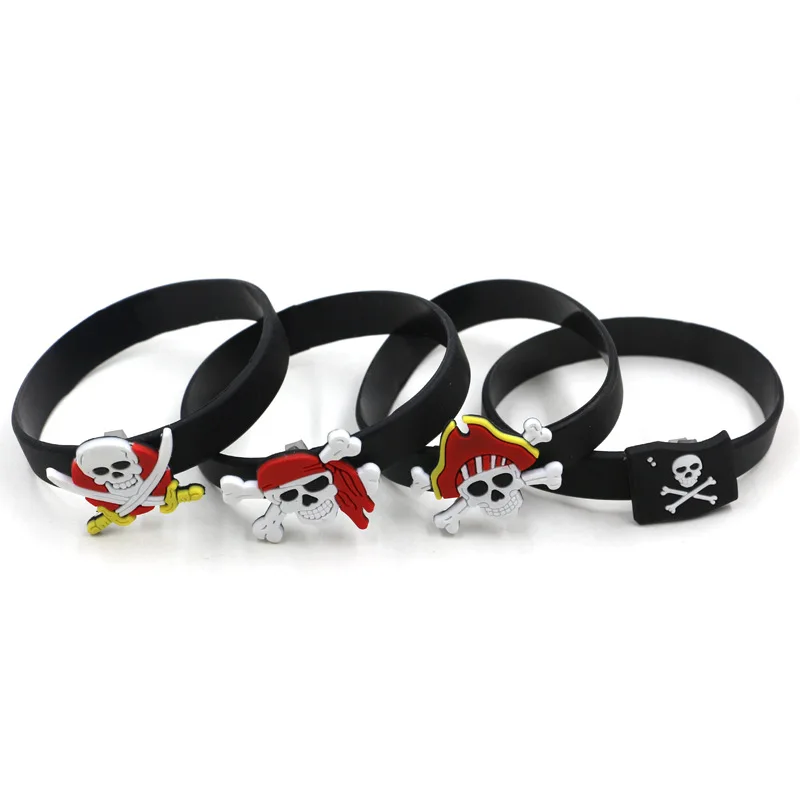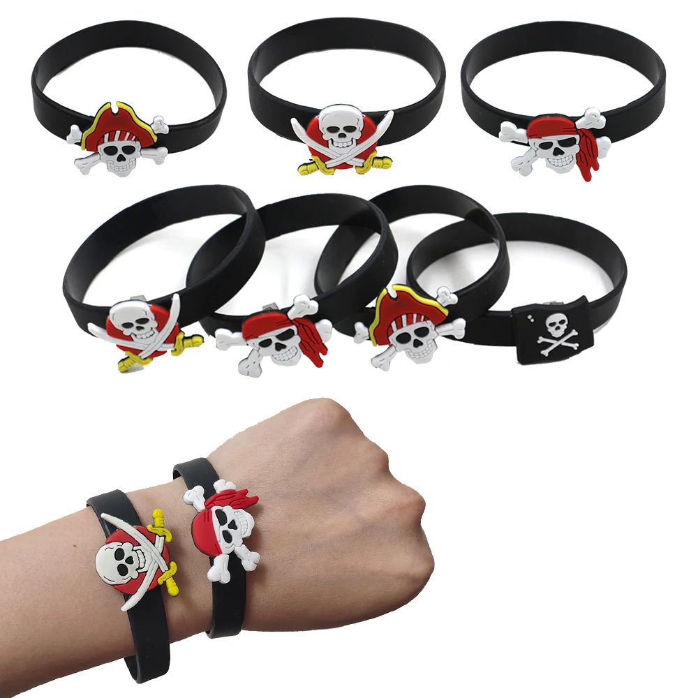 6Pcs Pirate Party Favors Pirate Bracelets Rubber Wristband Pirate Skull Bracelet